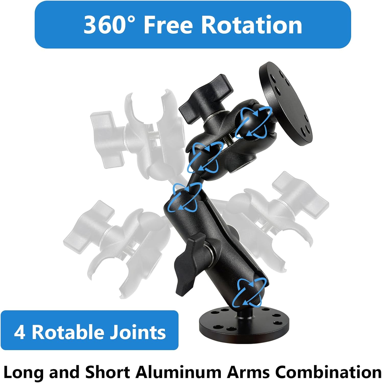 Fish Finder Mount, Aluminum Arm Extension, T-Bolt Attachment for Track Systems, B Size Ball Mount Compatible with RAM, Double AMPS Round Plate for GPS/Boats/Industry