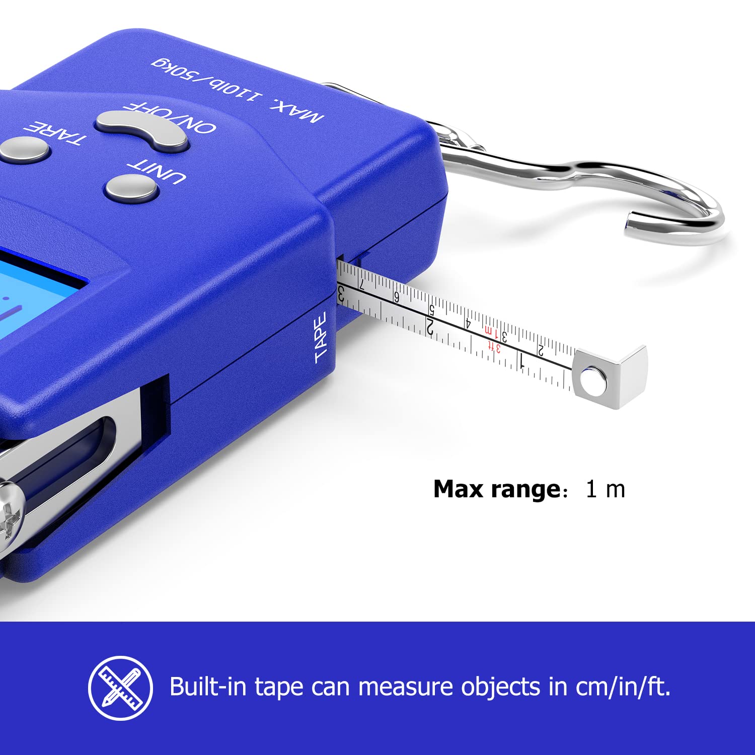 • Bonus Built-in Tape: Maybe you also want to know the length of your catch besides weight. We've got it covered! The included measuring tape is ideal for measuring items in either cm or ft. (up to 3 ft.).