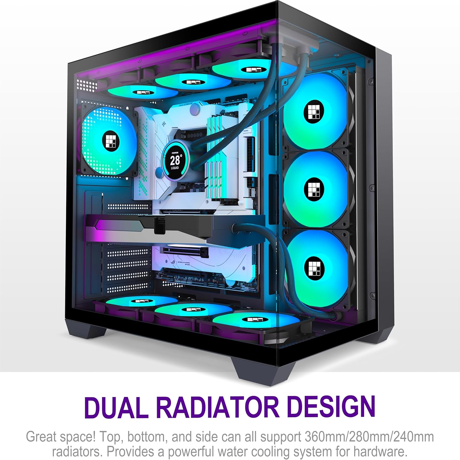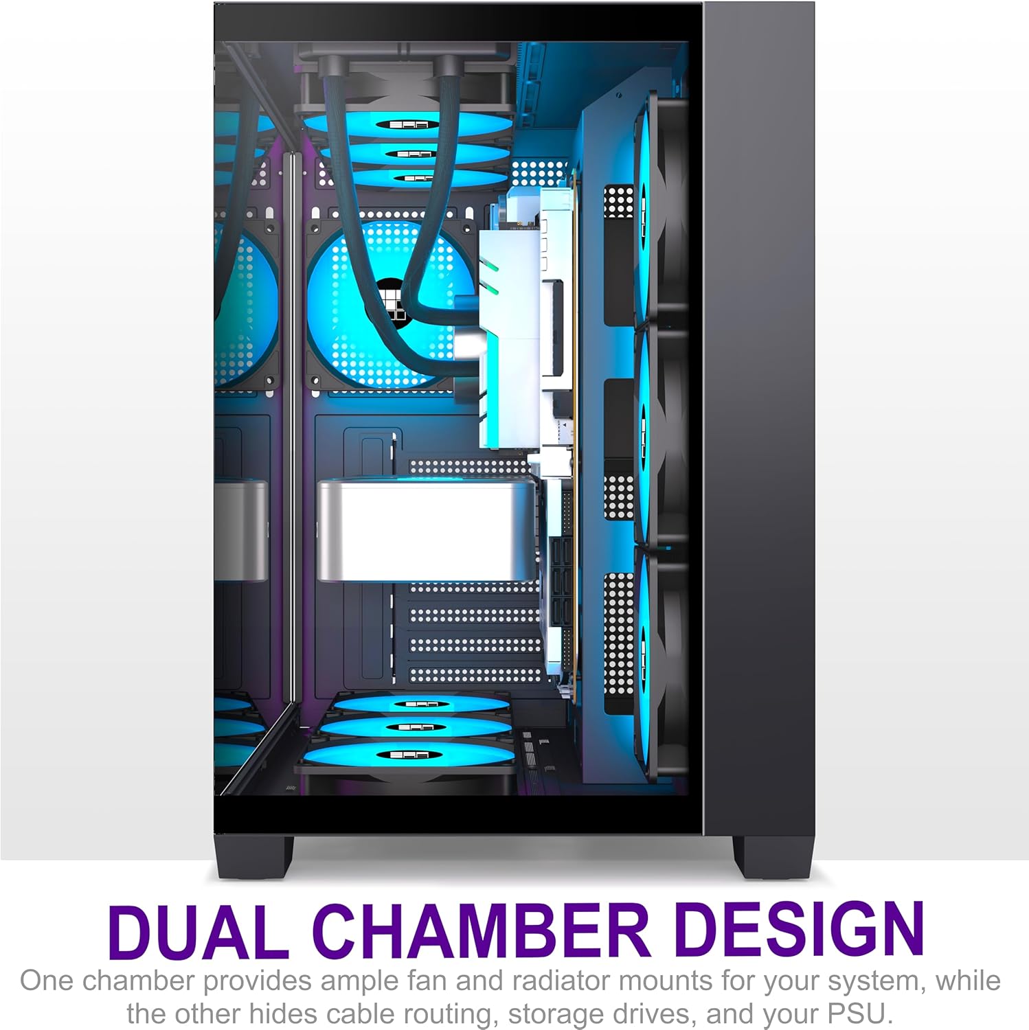 【270° Panoramic Dual Cabin Design】The FOIFKIN F600 PC case adopts a sleek and modern design, consisting of a 270° panoramic tempered glass panel for a wider field of vision. The design of the fully transparent glass curtain wall provides a high-quality display platform for your high-end hardware components. The tempered glass has good sound insulation, provides great comfort for office/gaming environments, requires no tools and is easy to disassemble.