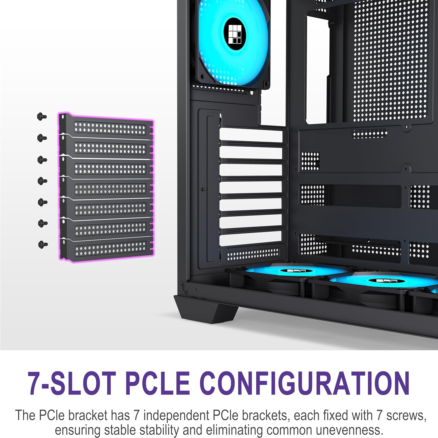 【Extra Large Capacity】 The space in the case is configured for each component and will be fully compatible with your new computer components. (1) Support ATX/M-ATX/ITX motherboard (2) Support 360MM cooler (3) CPU cooler height 170MM (4) GPU length limit 400MM (5) Power supply type ATX up to 220MM (6) Equipped with 1* HDD and 1* SSD mount or (2* HDD) (7) Expansion slots 7+3pcs