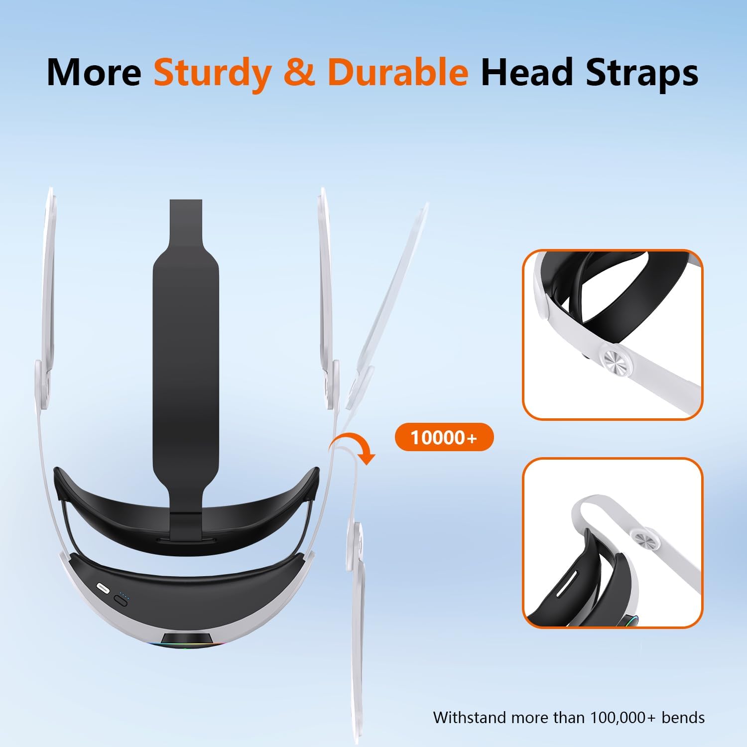 - 【Head Strap with 10000mAh Battery】Built-in 10000mAh battery delivers up to double the playtime, solving the power demand problem of Quest 3/3S and adding about 4-6 hours of battery life. With a USB-C interface, you can hassle-freely charge both the headset and battery strap with a single cable, saving time and effort.