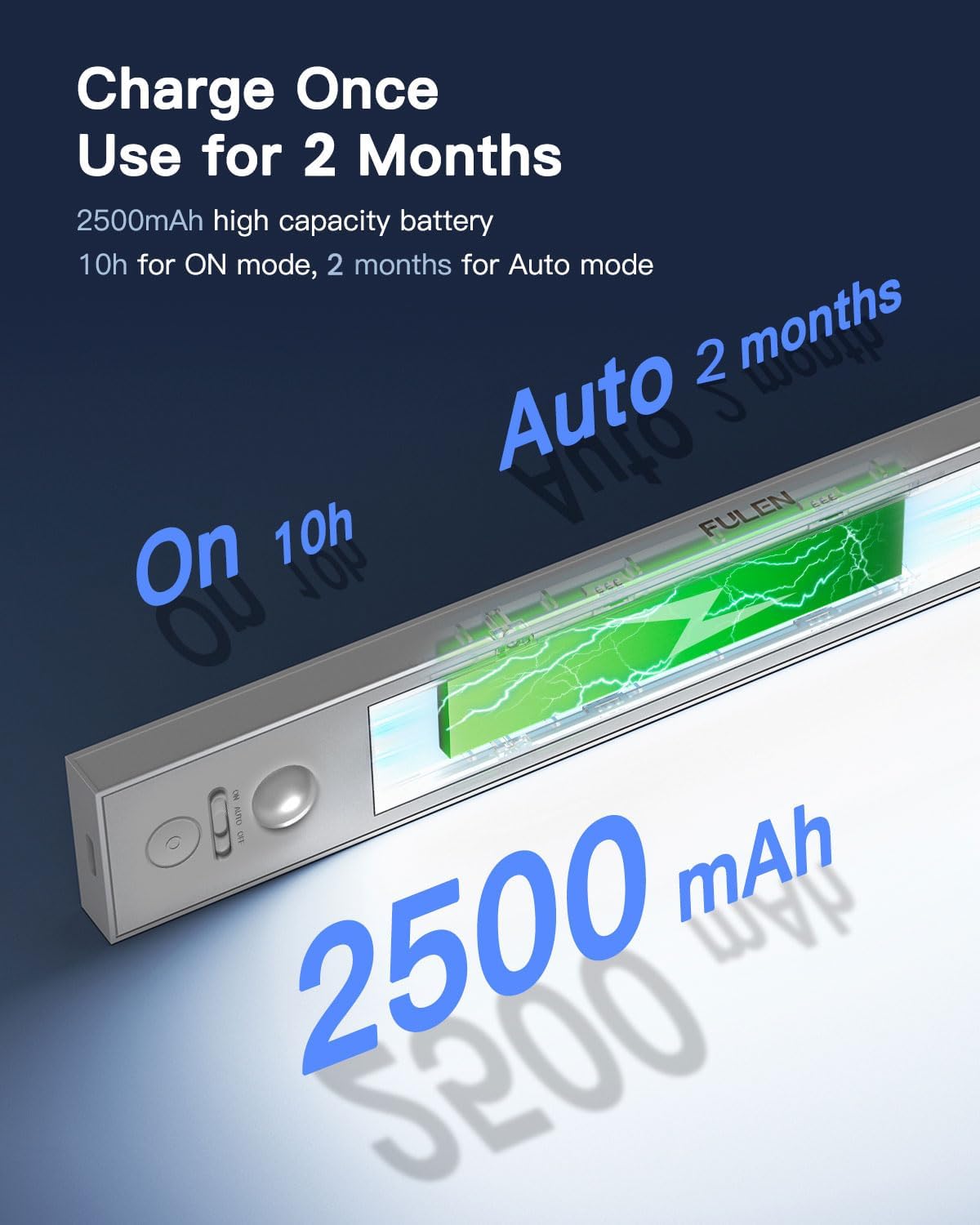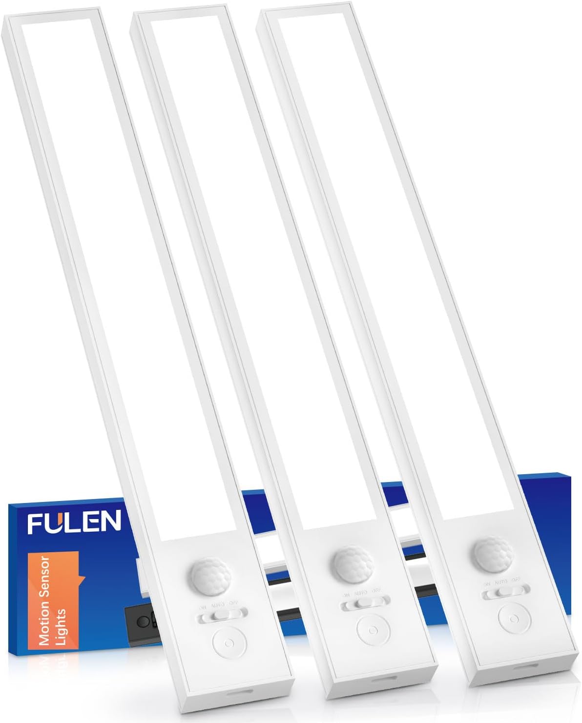 FULEN Under Cabinet Lights,3 Pack Motion Sensor Closet Lights,2500mAh Rechargeable Battery Operated Cabinet Lighting,Stick-On LED Closet Light,Wireless Indoor Lights Bar for Kitchen,Closets,Cabinet