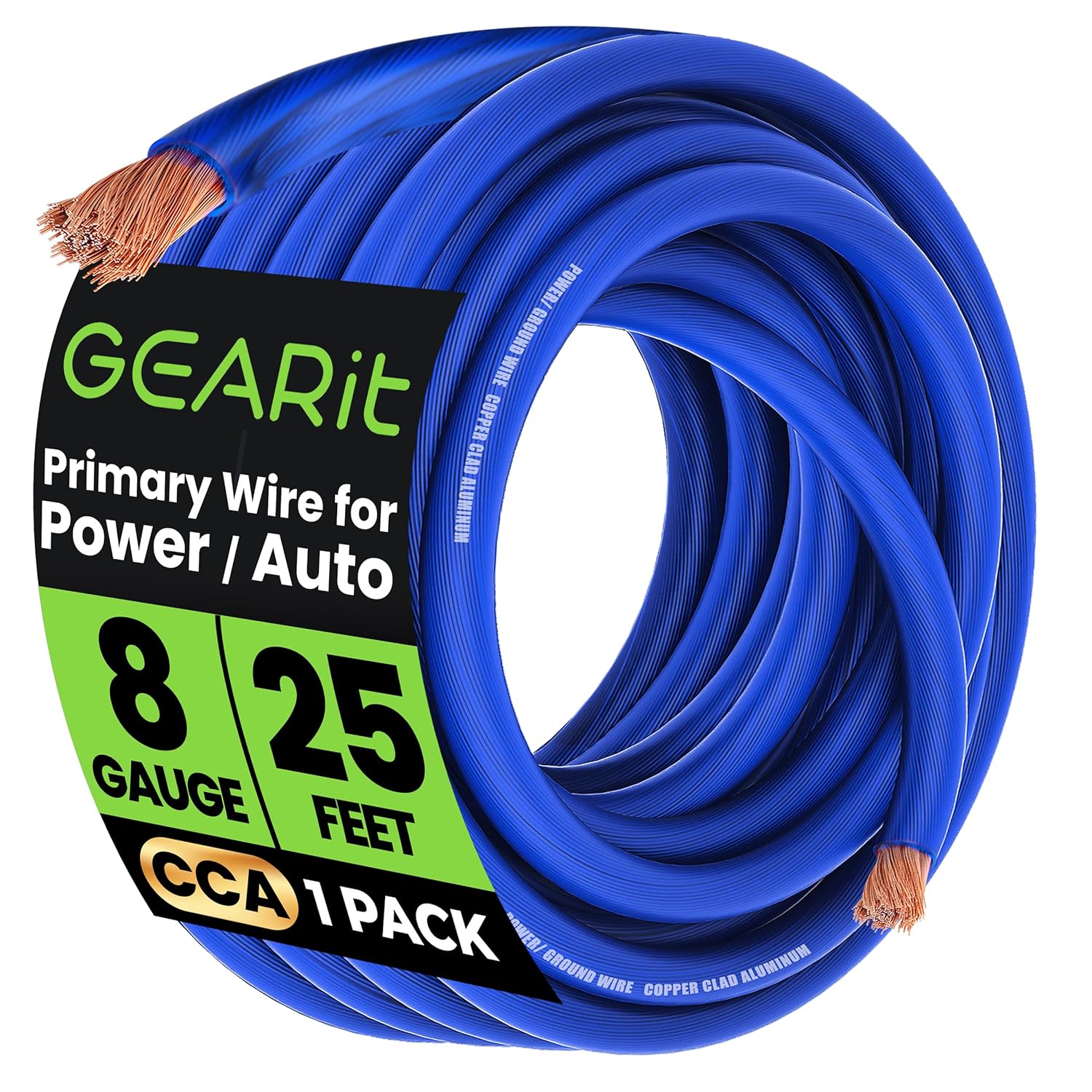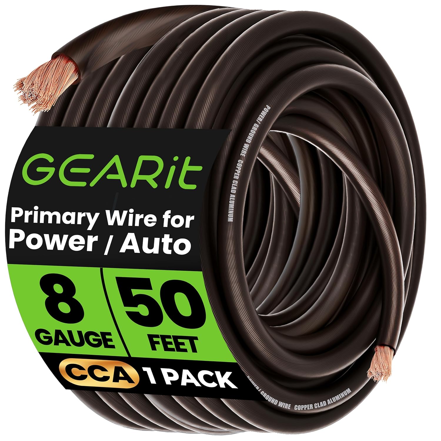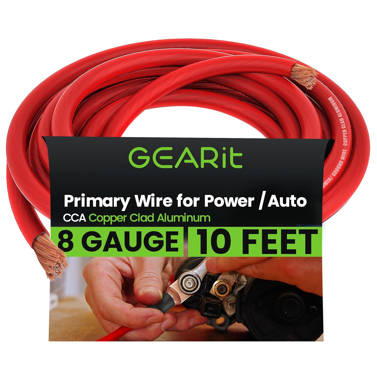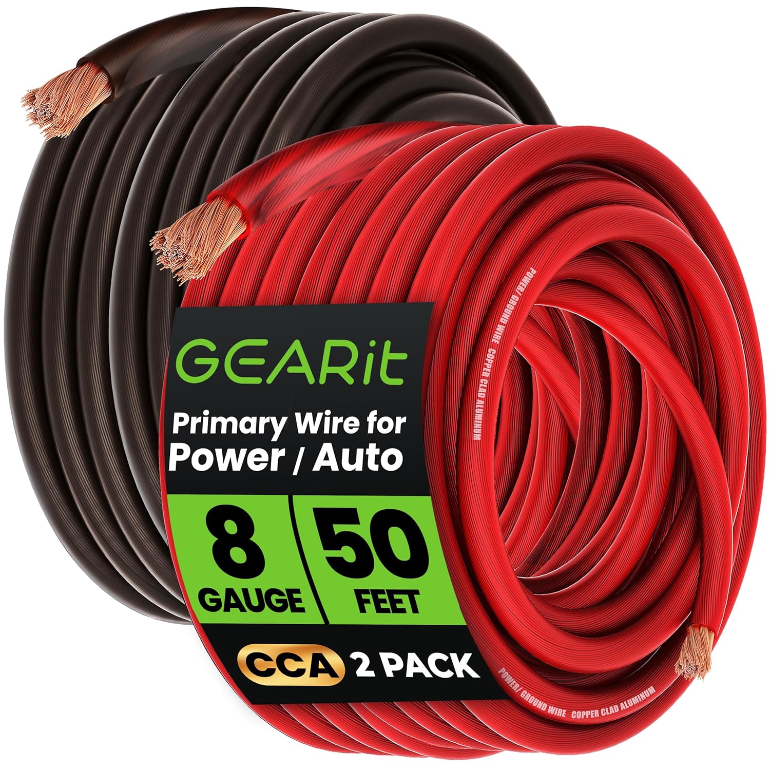 GEARit, 8 Gauge Wire, for Automotive Power/Ground, Battery Cable, Car Audio, RV, Amp, CCA, Automotive Wire, Amp Kit, Battery Cables, Wiring Kit, (25 feet Each- Black/Red)