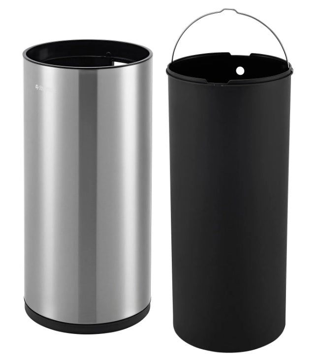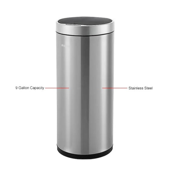 Type Motion Sensor Trash Can Liner Material Plastic Color Silver Lid Yes Capacity 9-1/4 gal Finish Brushed Lid Type Motion Sensor Lid Material Stainless Steel Manufacturers Part Number 641592SS Indoor/Outdoor Indoor Shape Round Brand Global Industrial