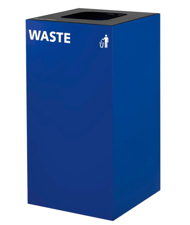 The Global Industrial™ Square Recycling/Trash Can with Waste Lid is lightweight yet durable to withstand indoor or outdoor use. Ideal for office complexes, stadiums, schools, and other large facilities. It has a sleek appearance and shape that slots easily beside like-models, allowing you to create multiple types of configurations for trash and recycling stations. This affordable, durable receptacle comes with a "Recycle" and "Waste" label allowing you to customize the can. This steel-made receptacle provides strong durability and is designed to prevent wear over time, dents, cracks, or warps in extreme temperatures. It is ideal for indoor or outdoor use in schools, businesses, and other high-traffic areas. 1-Year Limited Warranty.