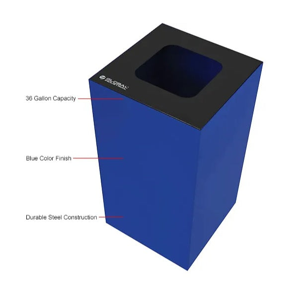 Global Industrial™ Square Recycling/Trash Can with Waste Lid, 36 Gallon, Blue