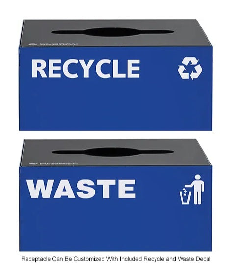 ✓ Receptacle can be customized with included decals to accept waste or recyclables.