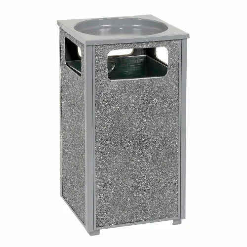 The Global Industrial™ Stone-Panel Trash Sand Urn withstands extreme weather conditions and long-term daily use with a fire-safe and attractive stone finish. The stone panels are made out of reinforced resin material that maintenance and vandalism free finish. Top removes easily for emptying. Includes leak-proof, fire resistant removable galvanized steel liner with handles. Heavy steel frame construction provides stability. Includes fixed height feet for anchoring. Removable Sand Urn top for easy cigarette butt disposal. Ships assembled. Sand sold separately.