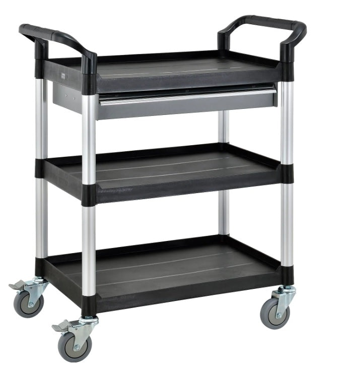 Global Industrial™ Utility Cart, 3 Shelves, 1 Drawer, 440 lb. Cap, 26"L x 17"W x 39"H, Black