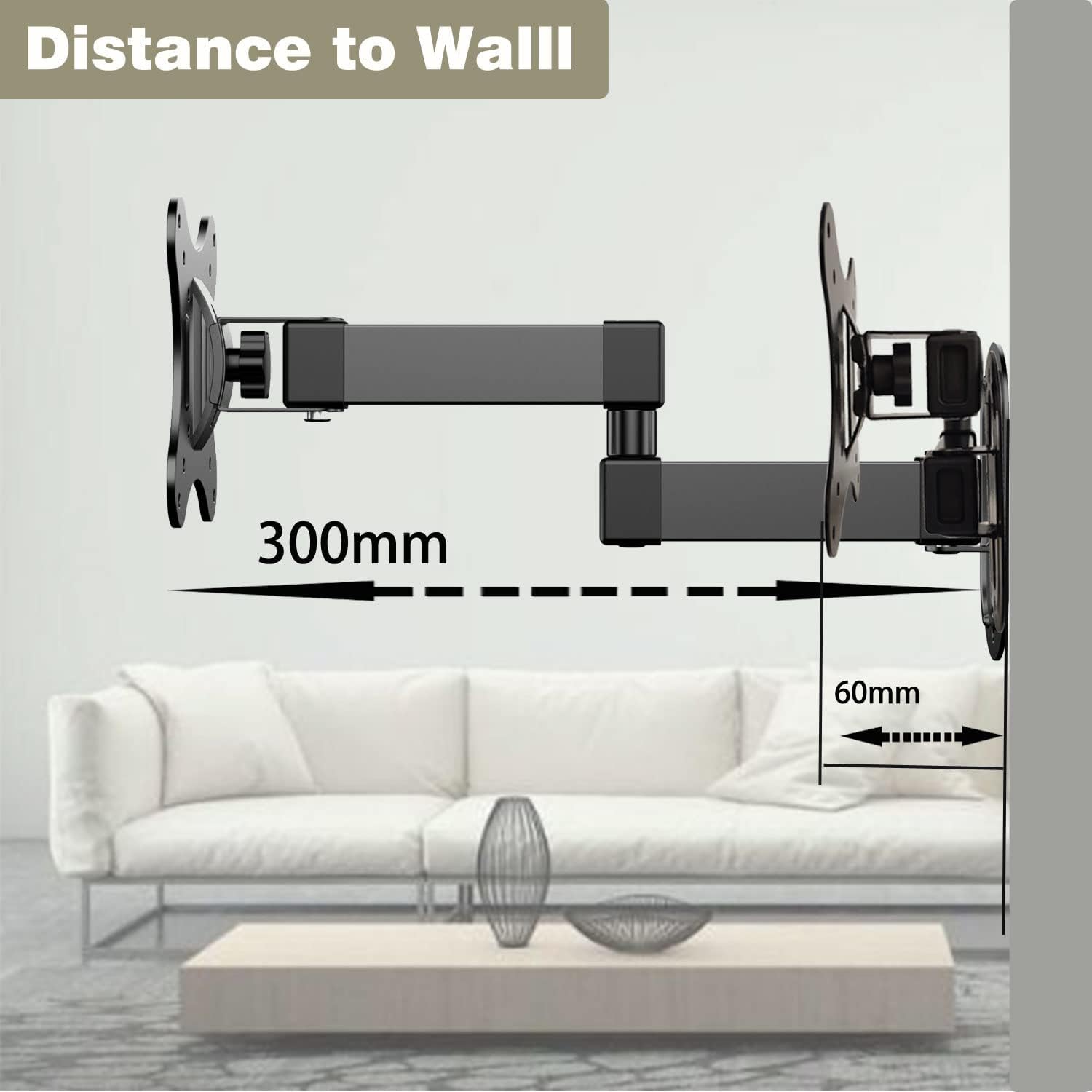 - 【HEAVY DUTY & STURDY】 The strong articulating 3-arm structure with cold-rolled steel ensures reliable strength, provides you sufficient swivel angle and arm design to support TVs weighting up to 10kg/22lbs. We are so confident in the construction, strength and durability of this wall bracket.