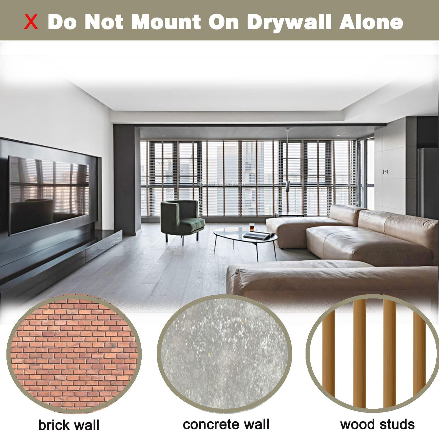 - 【NOTE】 This TV wall mount fits solid concrete wall or single wood stud. Not for drywall alone installation.