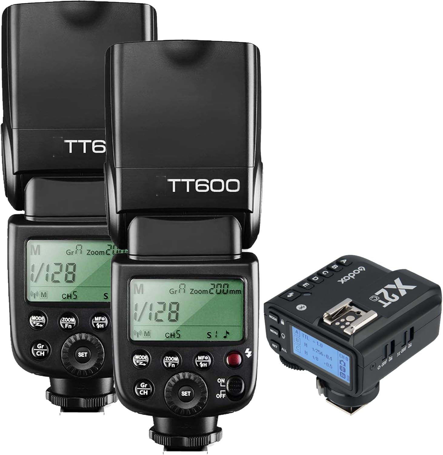 Godox 2pcs TT600 HSS 1/8000S 2.4G Wireless GN60 Flash Speedlite Built in Godox X System Receiver with X2T-C Trigger Transmitter Compatible Canon Camera