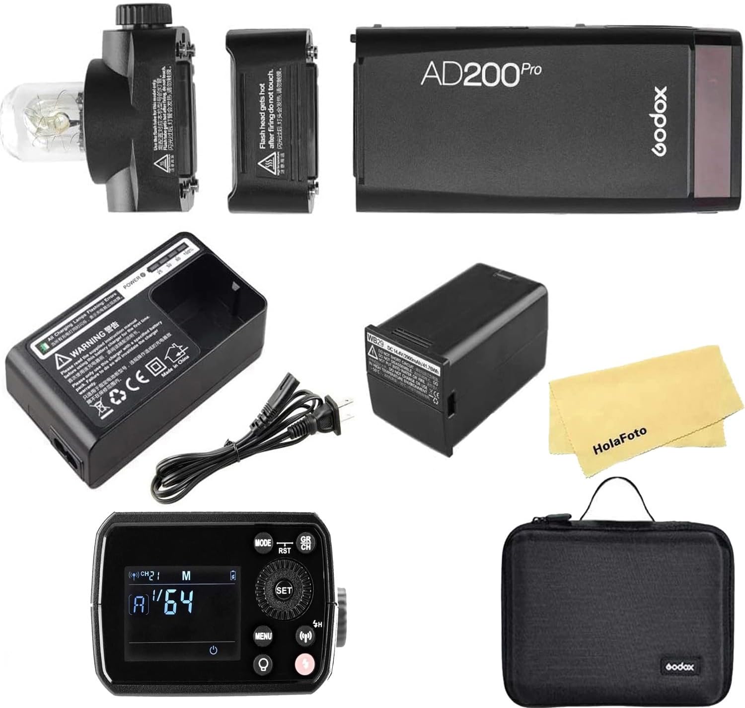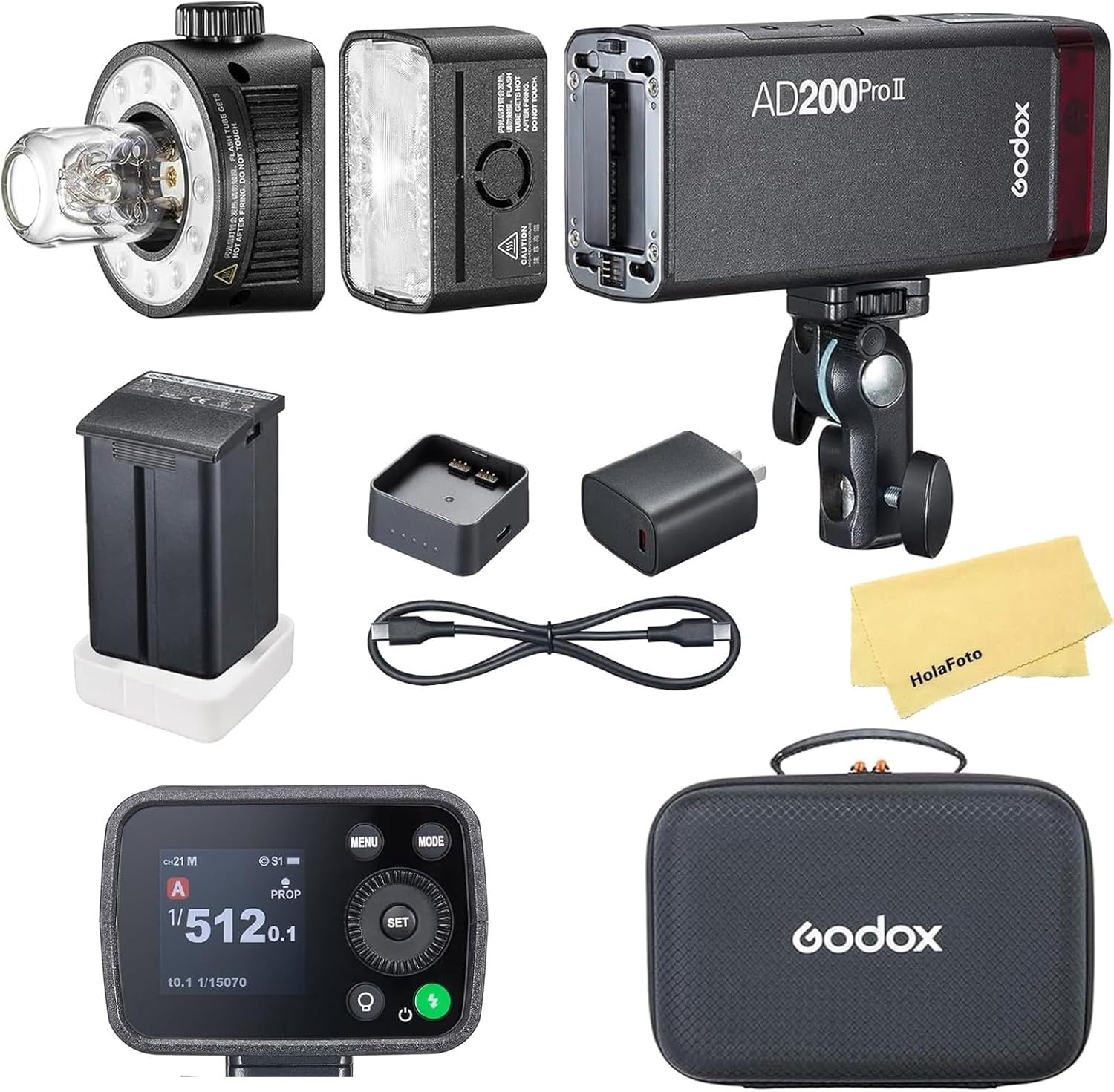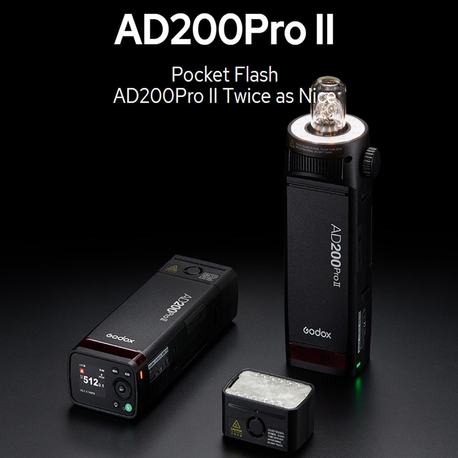 Godox AD200 Pro II 2.4G Pocket Flash Strobe,500 Full Power Flashes,0.01-1.8s Recycling,2900mAh Battery for Canon Sony Nikon Fuji Fujifilm Olympus Panasonic Pentax Etc Cameras(Godox AD200 Pro Upgraded)