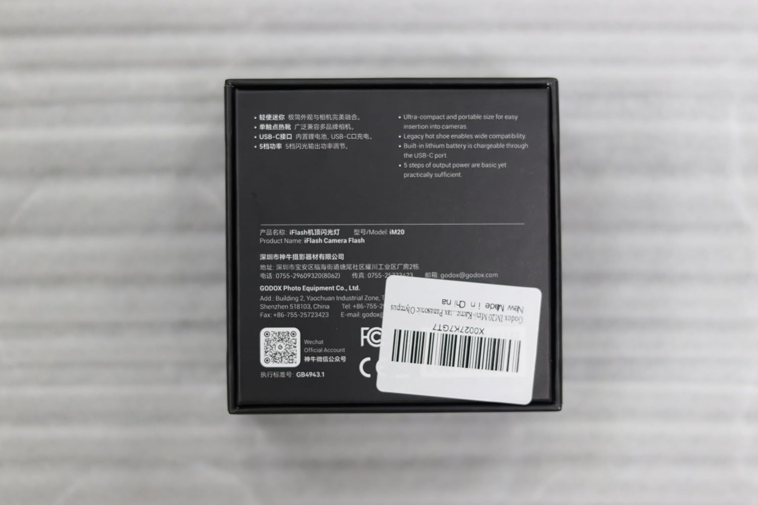 | Included components | 1x Godox im20 flash ,1x Carrying bag,1X Cleaning Cloth |