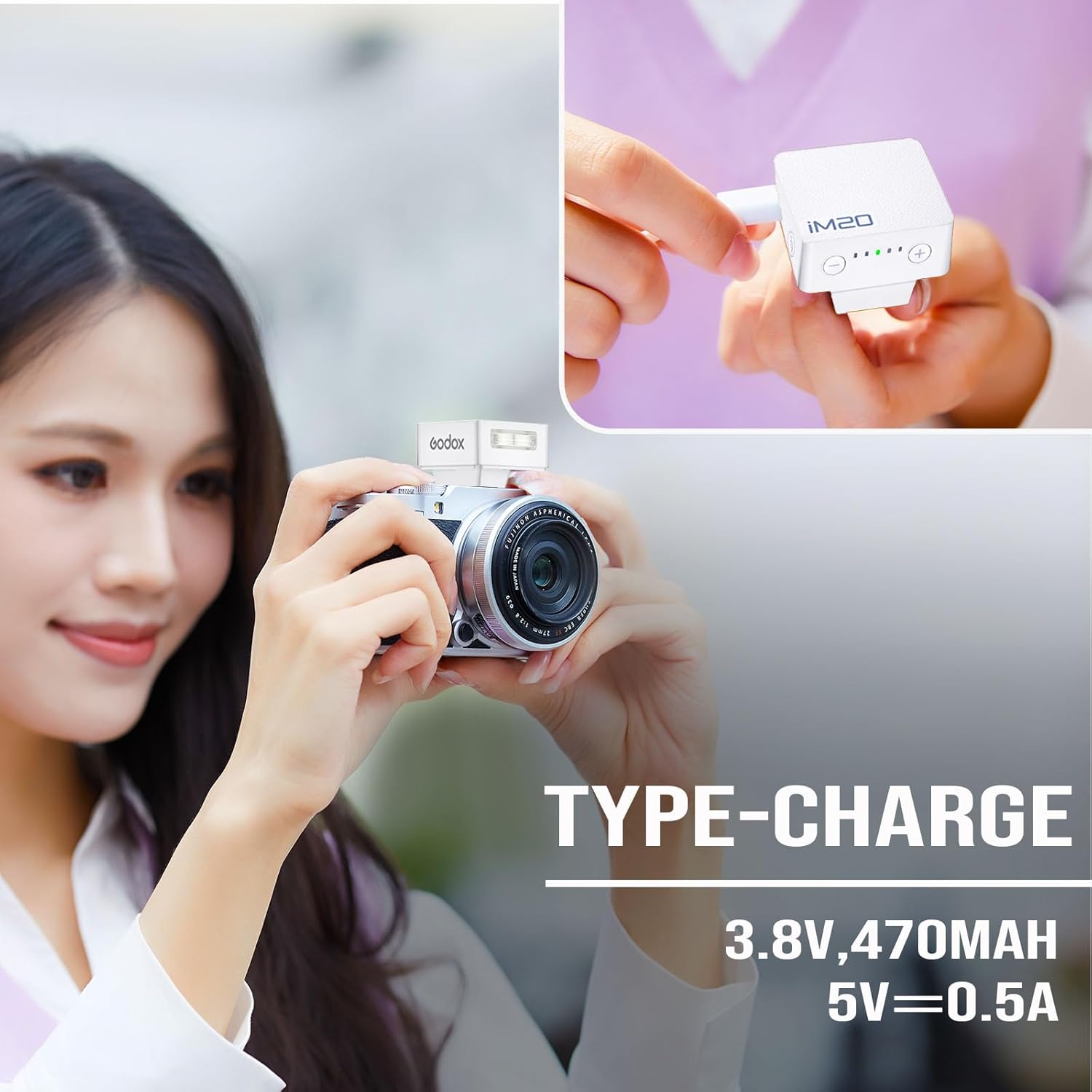 - Convenient Type-C Lithium-Battery:The Godox iM20 mini flash is equipped with an internal-lithium-battery, ensuring stable output with faster recycling times, while keeping the design lightweight and portable. The Type-C charging port allows for rapid recharging, making you always ready for the next great shot