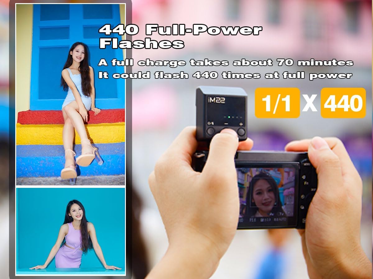 3.8V,470mAh Convenient Type-C Lithium-Battery:The Godox iM22 mini flash is equipped with an internal-lithium-battery, ensuring stable output with faster recycling times, while keeping the design lightweight and portable. The Type-C charging port allows for rapid recharging, making you always ready for the next great shot