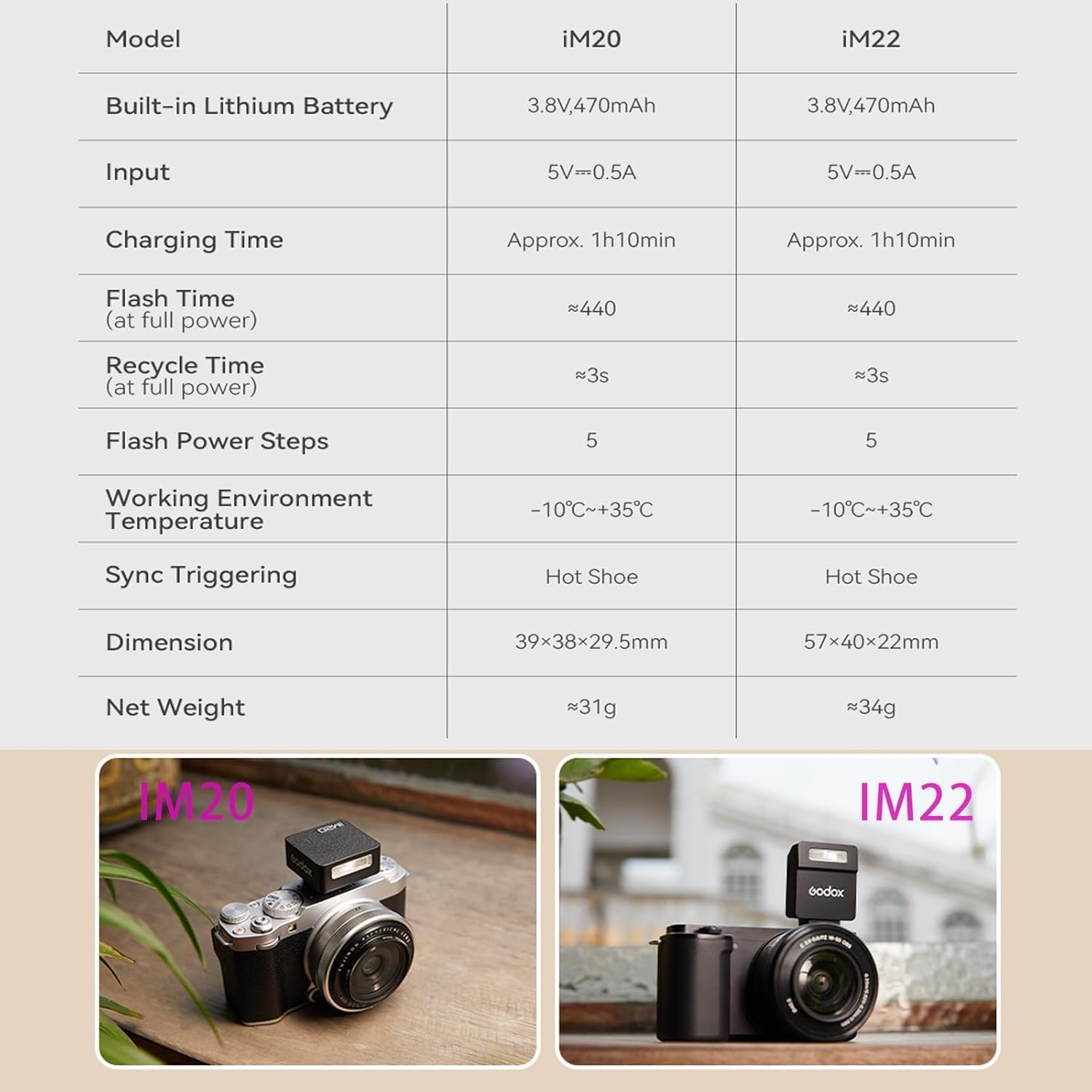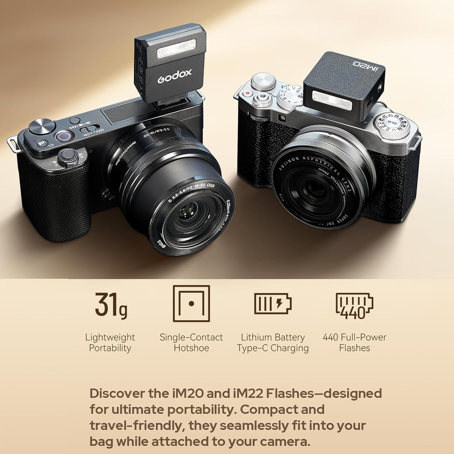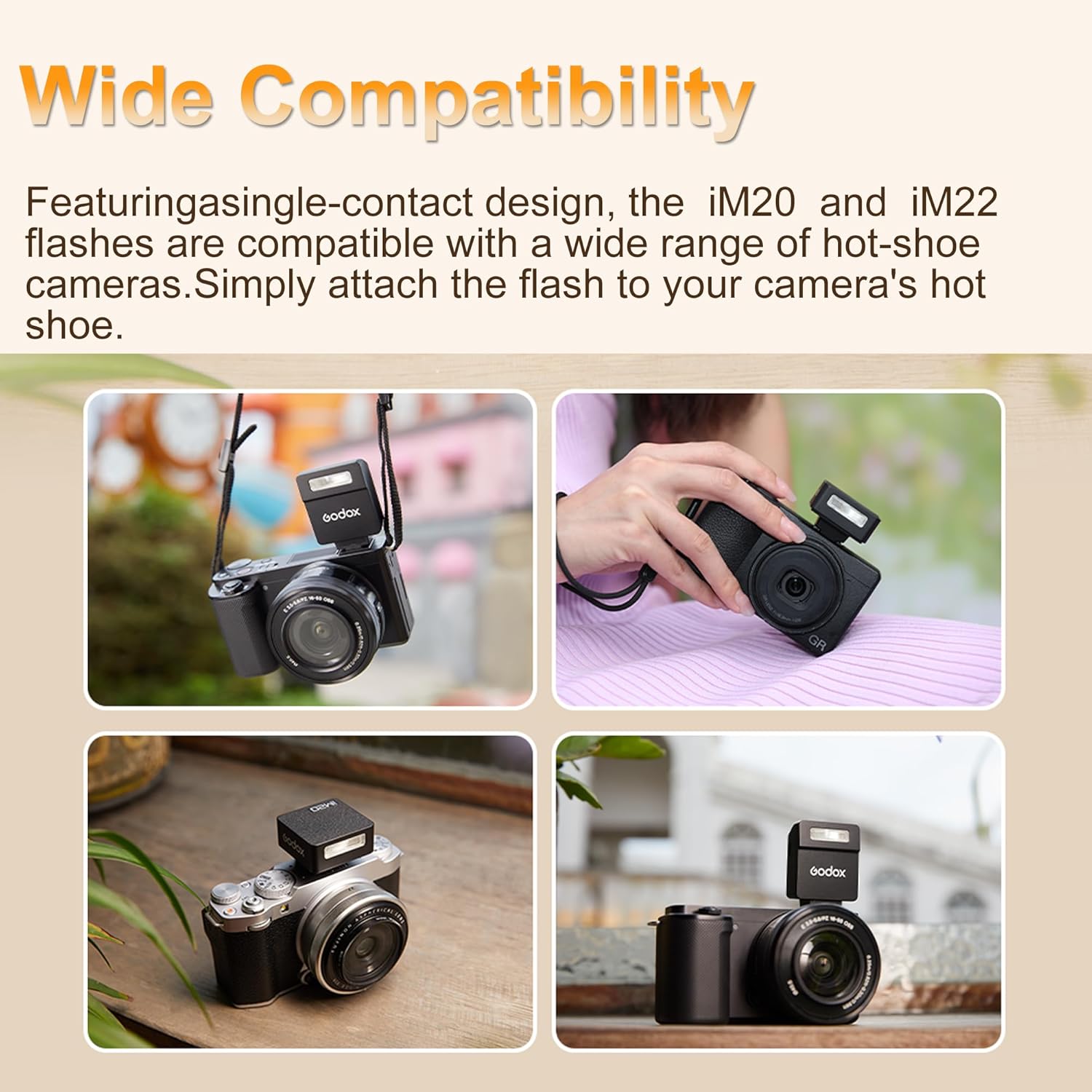 Godox IM20/IM22 Mini Camera Flash,3s Recycle Time,440 Full Power Flash Time Built in Lithium Battery for Fuji,for Canon,for Nikon,for Sony, for Olympus Camera (im22)
