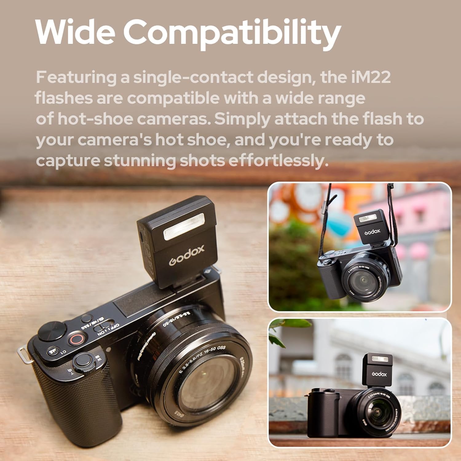 Godox iM30 Mini Camera Flash GN15 On-Camera Speedlite with 7 Power Levels 3.6s Recycle Time Single-Contact Hot Shoe Replacement for Canon Nikon Sony Mirrorless Cameras