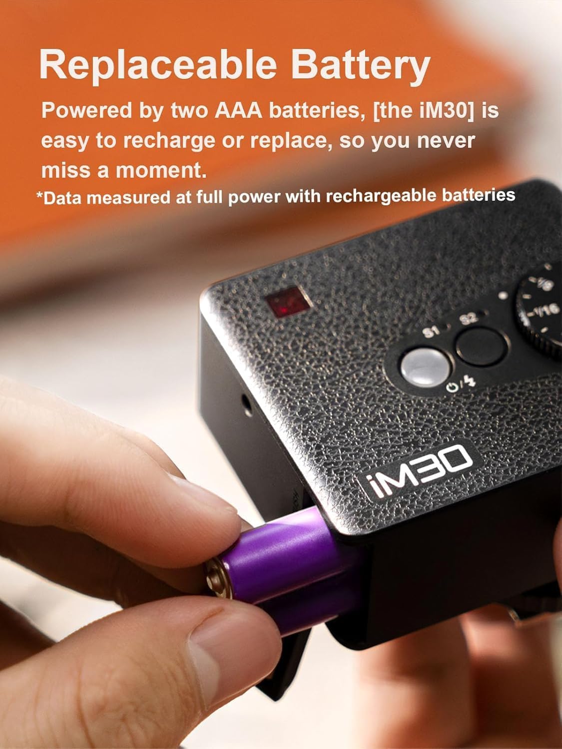 Reliable Power with AAA Batteries: Powered by two AAA batteries (not included), the IM30 provides up to 230 flashes per charge. Conveniently replace batteries for extended use without worrying about diminishing rechargeable batteries over time.