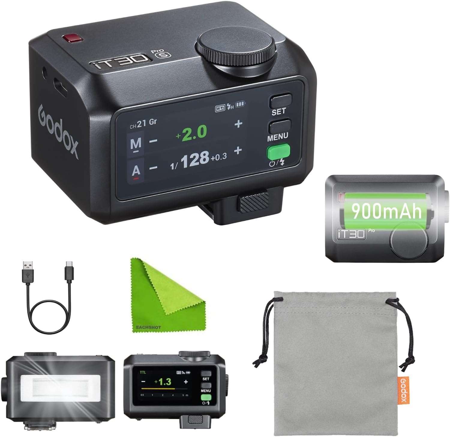 - Roughly one quarter the size of a traditional speedlight and weighing only 120 g, the iT30 Pro slips into any bag—ideal for on-location work.