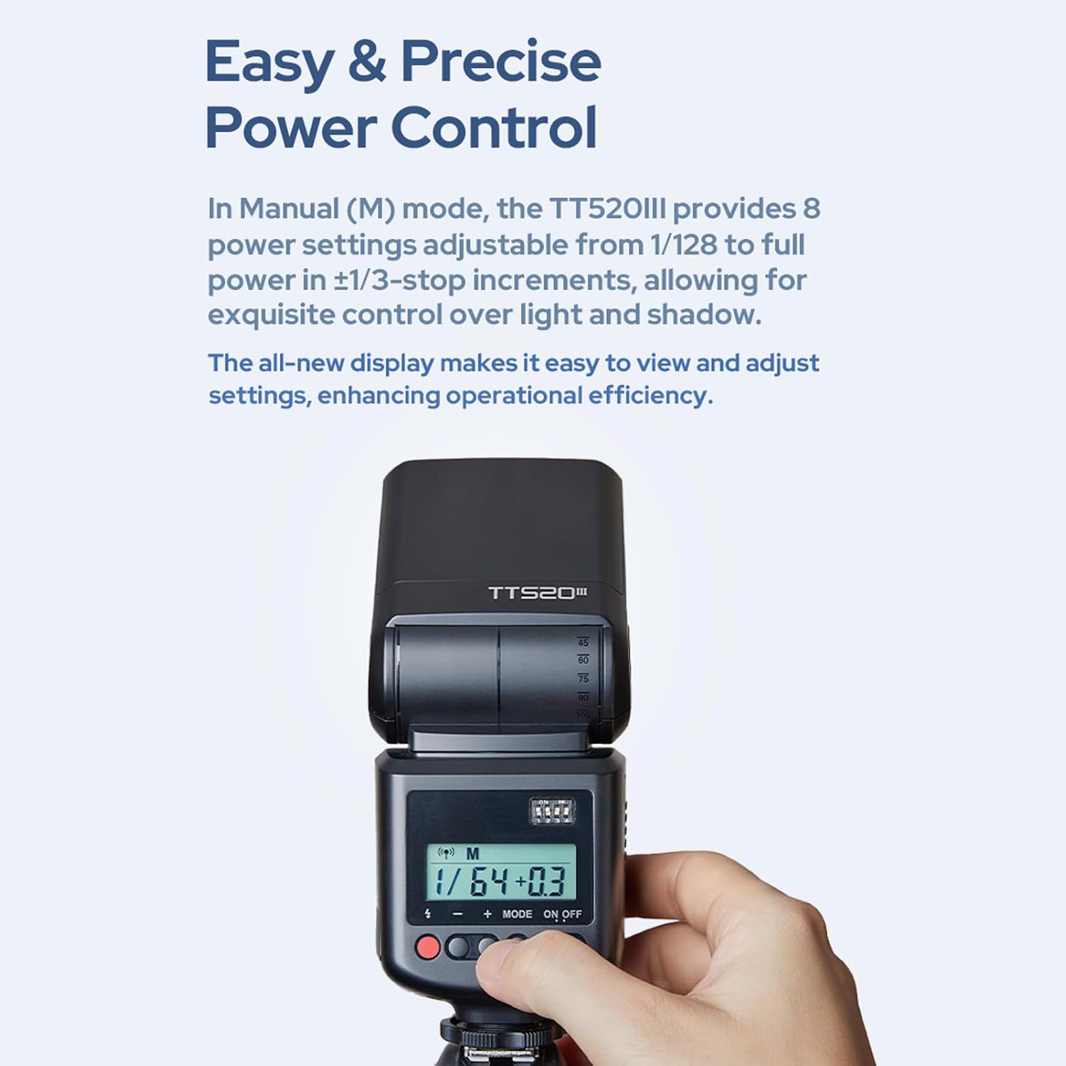 GODOX TT520III Camera Flash Speedlite with 433MHz Receiver, 8 Power Levels, Single-Contact Hotshoe Compatible with Canon Sony Nikon Fuji Olympus Panasonic