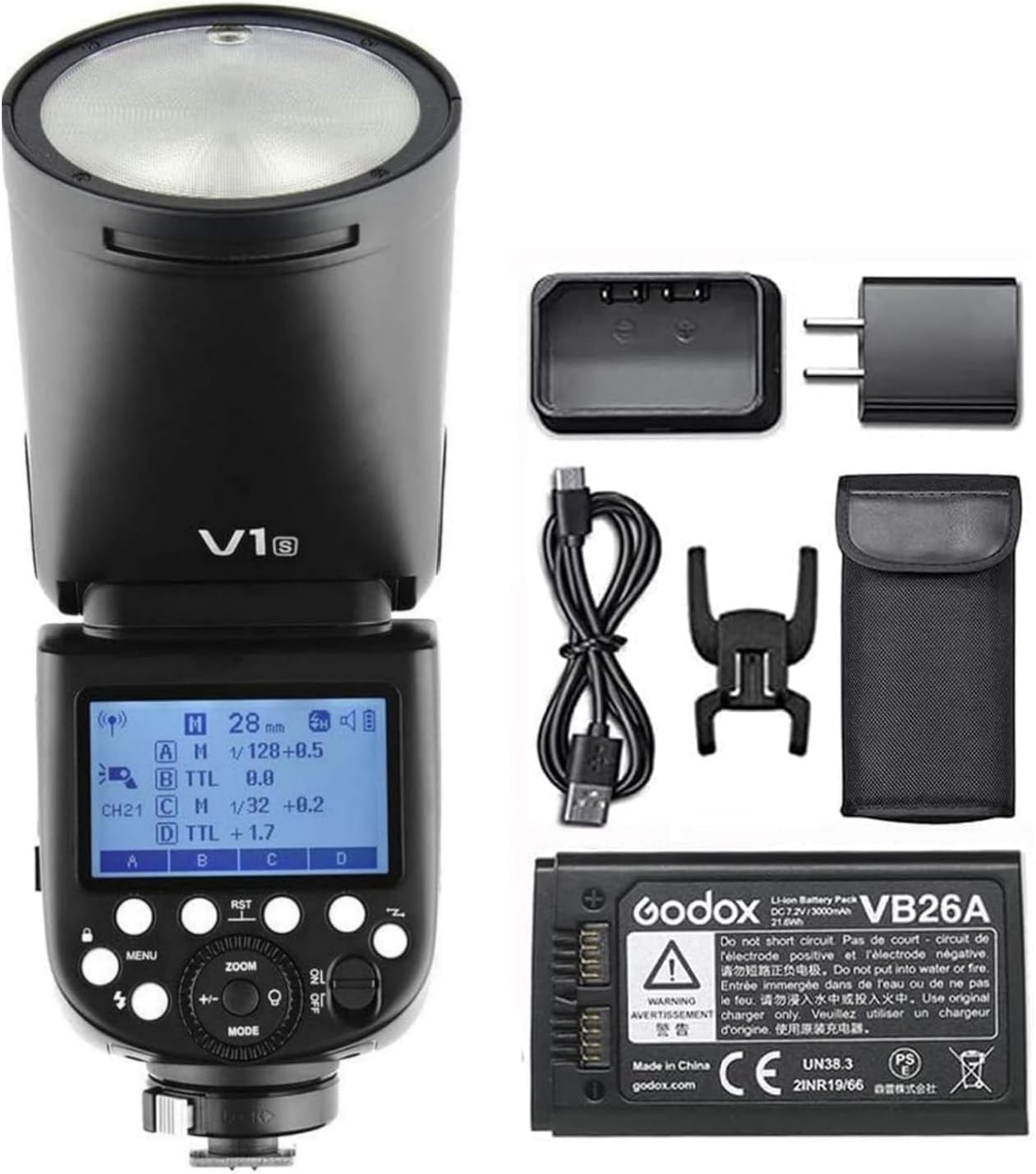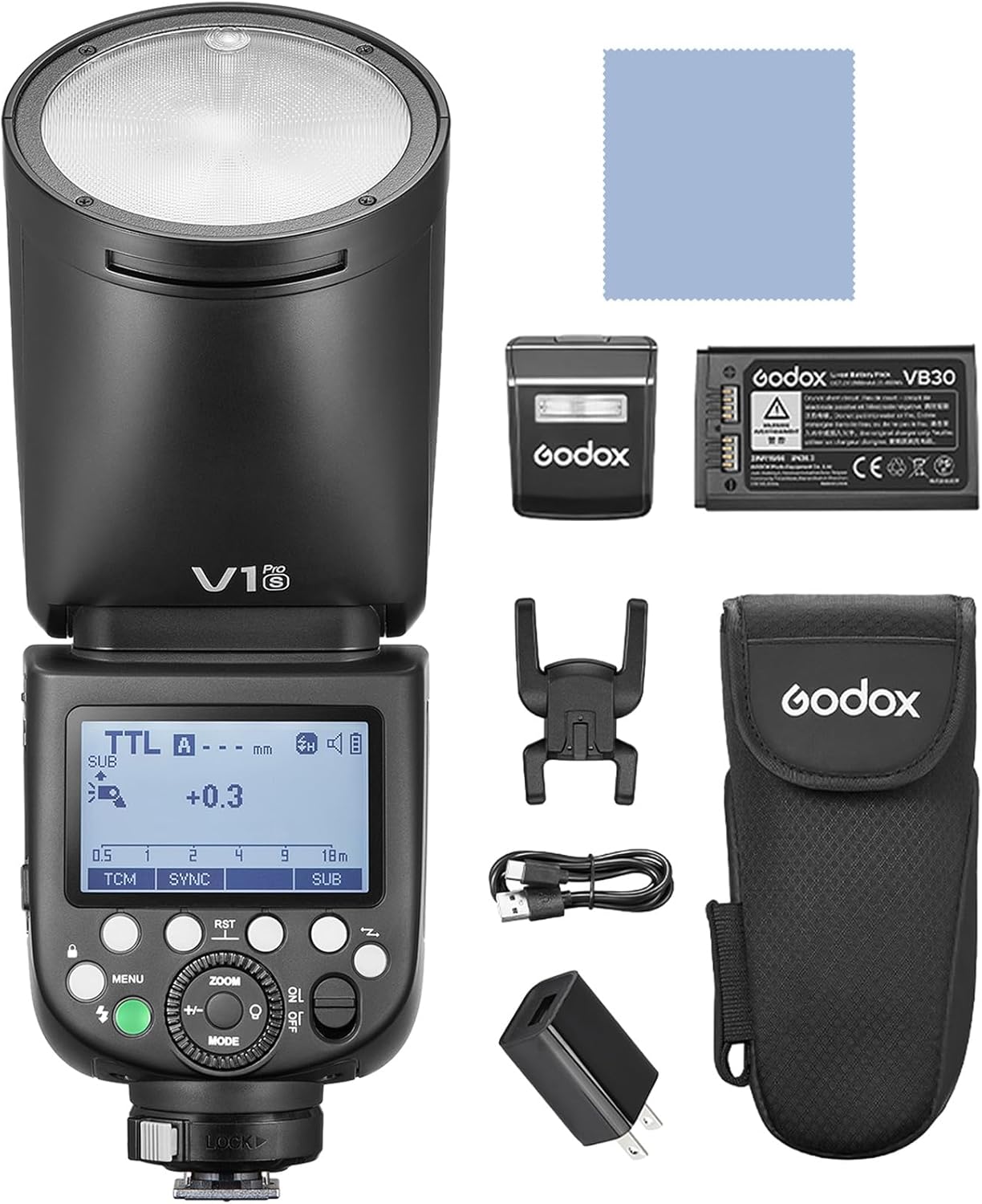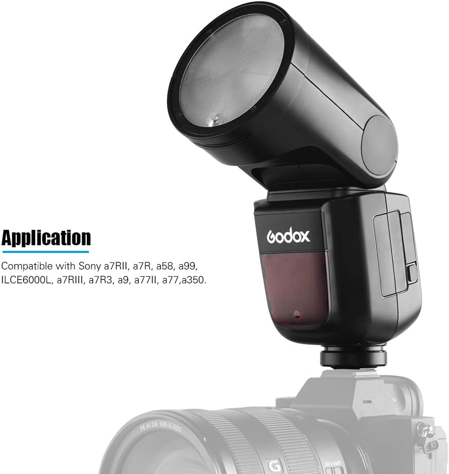 Godox V1S Professional Camera Flash Speedlite TTL Speedlight Round Head Wireless 2.4G Fresnel Zoom Compatible with Sony a7RII a7R a58 a99 ILCE6000L a7RIII a7R3 a9 a77II a77 a350 Camera for Photography
