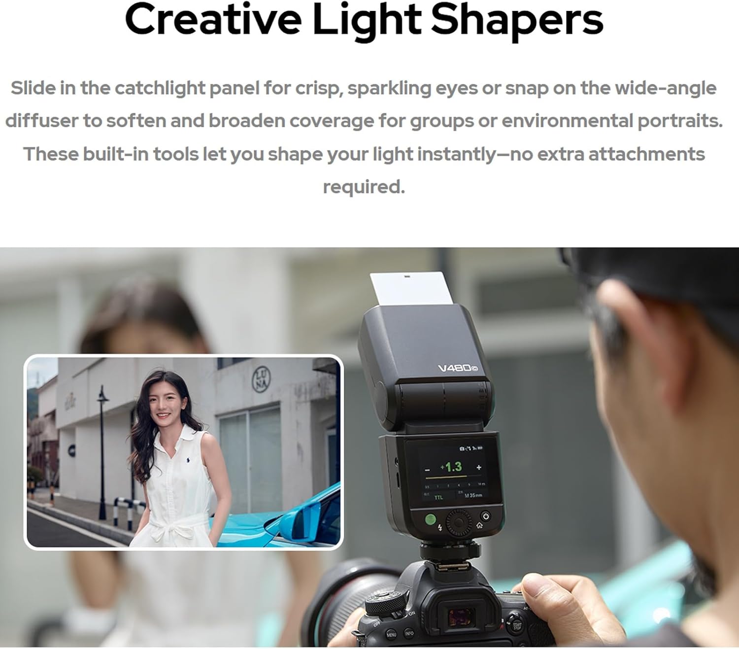 Pro-Level Flash Modes: V480 gives you full creative control with TTL, Manual, Multi mode, and High-Speed Sync up to 1/8000 s. Fine-tune your lighting with Flash Exposure Compensation, and choose between Front/Rear-Curtain Sync for dynamic motion effects.