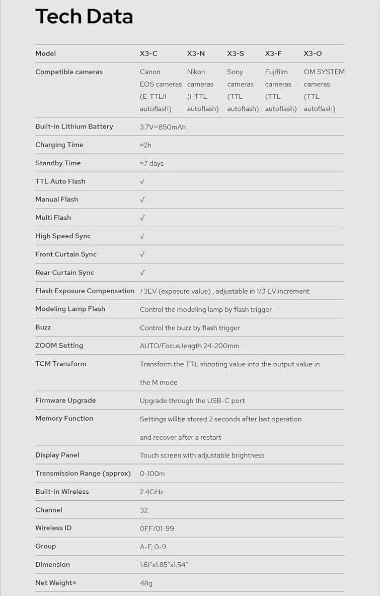 Precision at Your Fingertips: Master any shooting scenario with the X3 S's versatile two-way TCM feature. Instantly toggle between TTL mode for simplicity and Manual Mode for control.