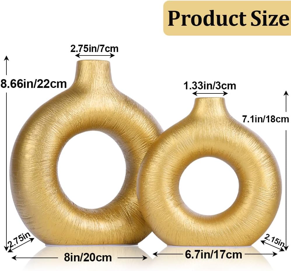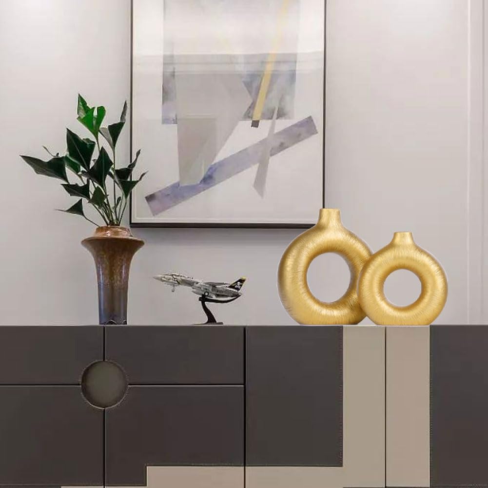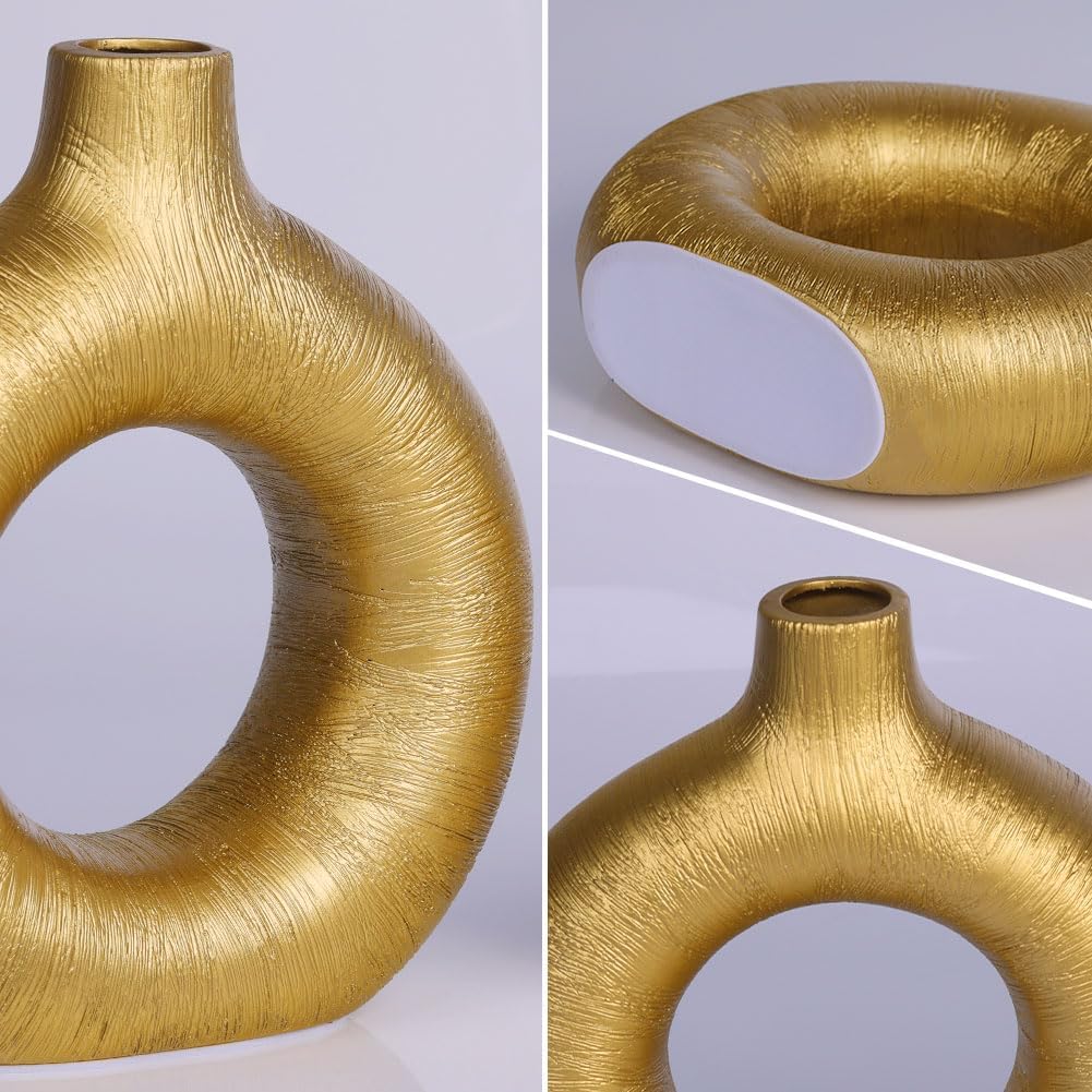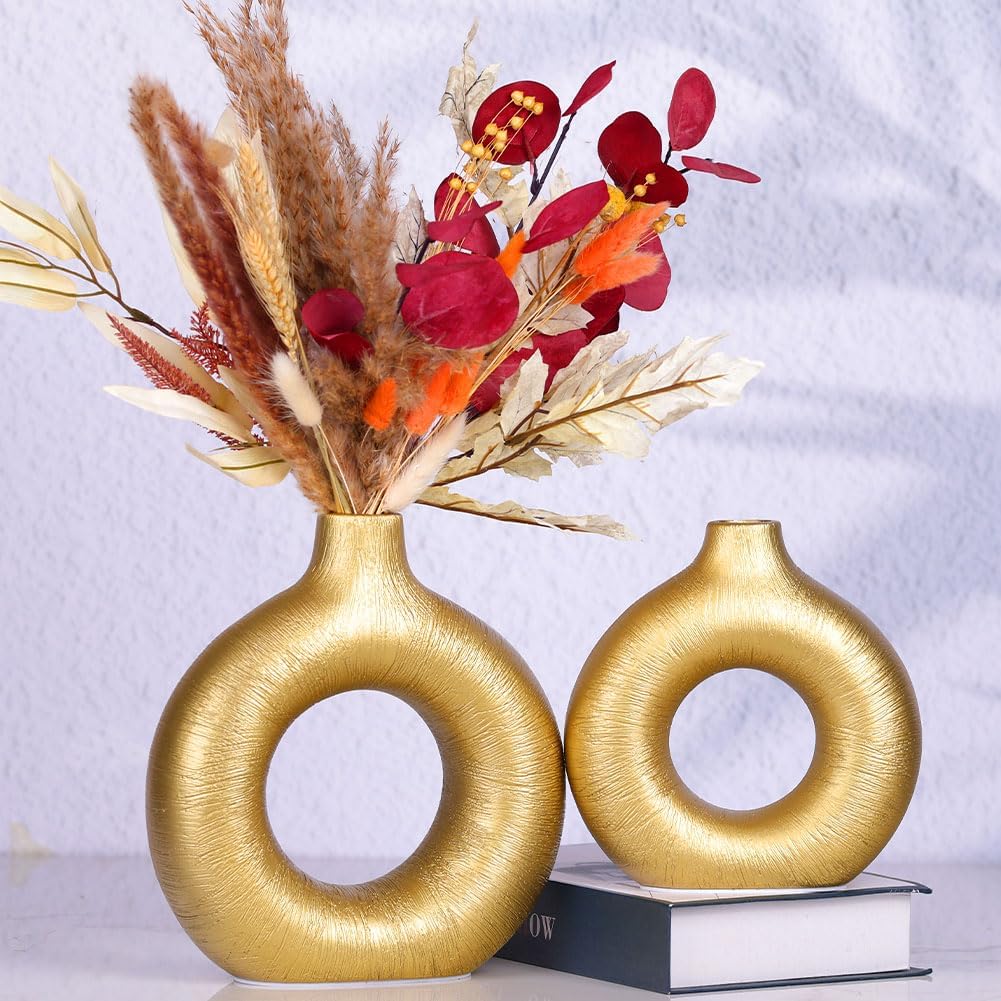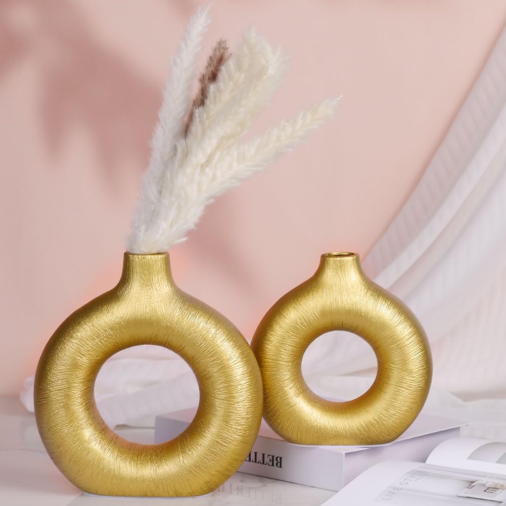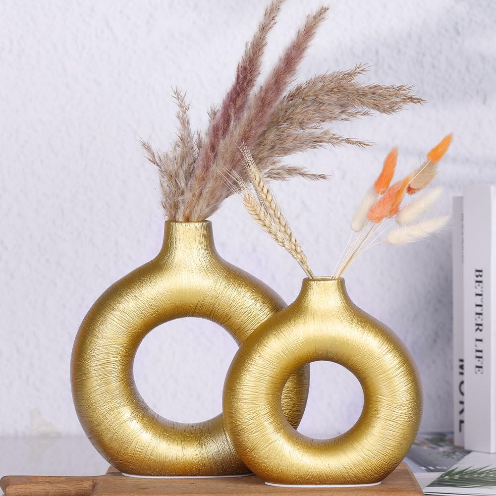 Matte Round Hollow Donut Flower Vases – Modern Boho Decorative Pieces for Pampas Grass, Weddings, Dining Tables, Offices & More