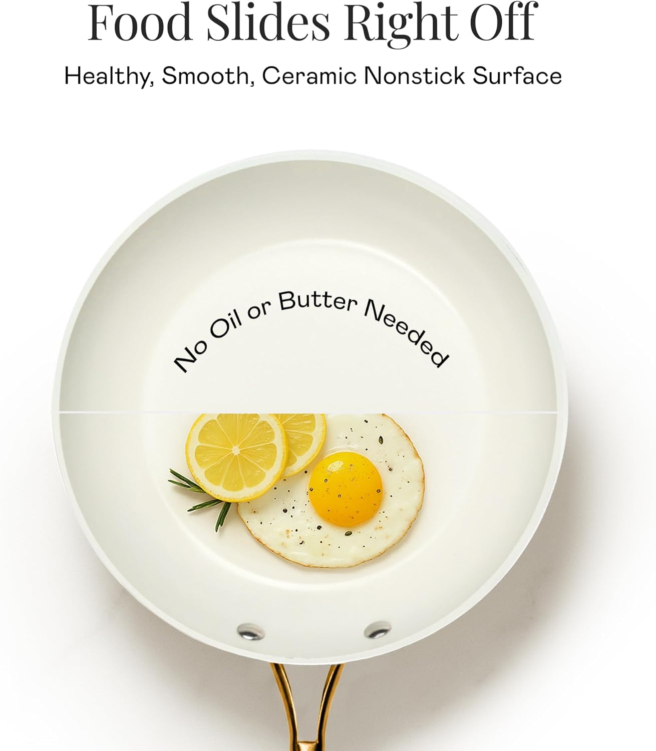 - ULTRA NONSTICK CERAMIC SURFACE: Healthy cooking is just a step away. Thanks to a nonstick surface that’s 2x more durable than previous generations, this cooking pan set needs minimal to no oil or butter. And they’re designed to properly conduct heat so food cooks evenly.