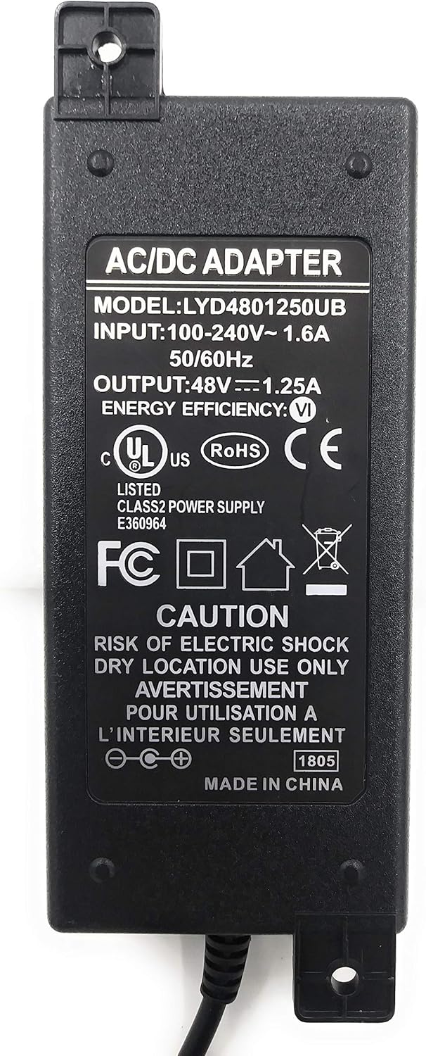 Power Output 48V DC, 60 Watts Shared (7.5W Max/Port)