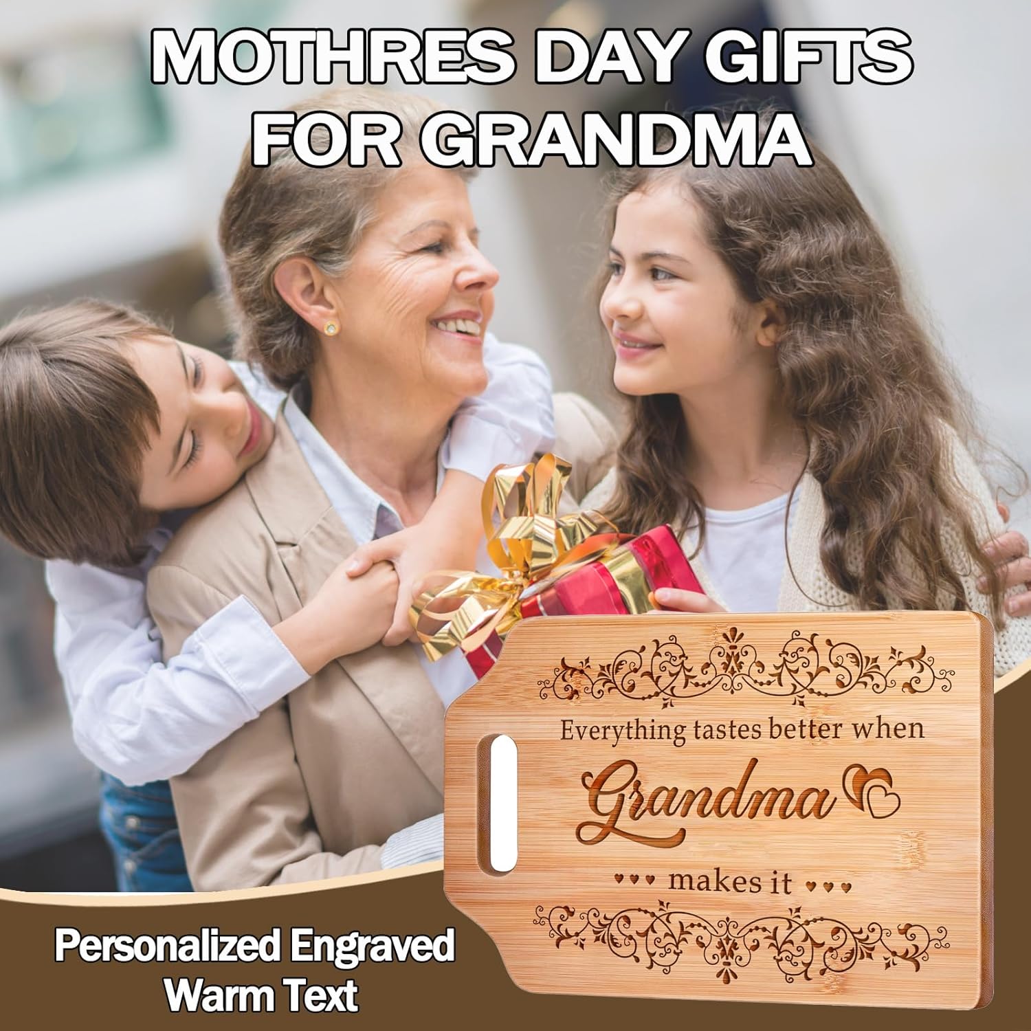 Grandma Gifts, Mothers Day Christmas, Birthday Gifts for Grandma from Grandkids - Engraved Bamboo Cutting Board 31 * 22 * 1cm, Stocking Stuffers for Women