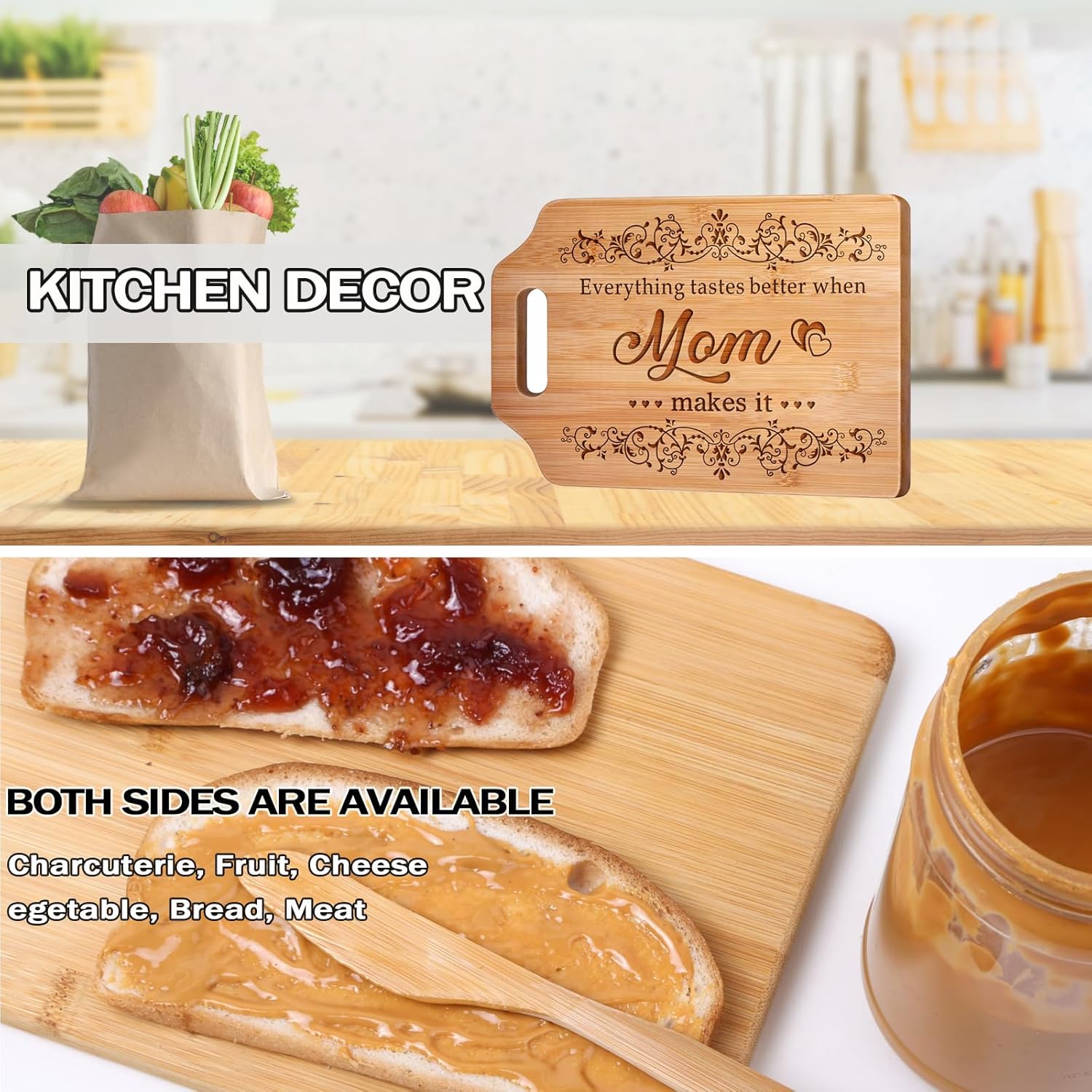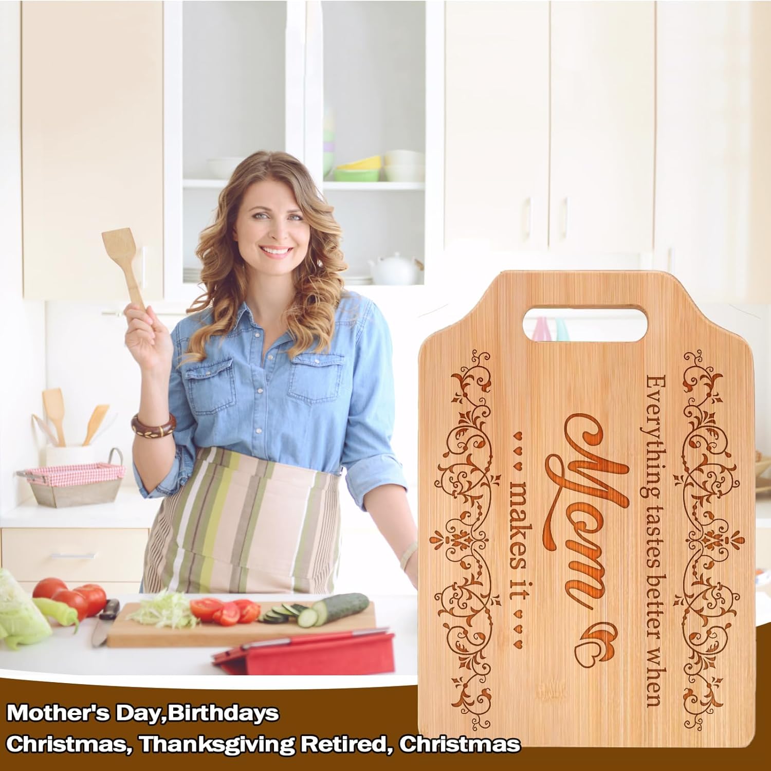 Grandma Mother's Day Gift: More than a mother's day gift, this bamboo cutting board is a timeless way to show your love—whether for Mother’s Day, birthdays, anniversaries, or just because. The engraved message “Everything tastes better when Mom makes it” turns everyday cooking into a daily reminder of your love. Simple, heartfelt engraved words, let it remind grandma she was cherished — today, tomorrow, every day.