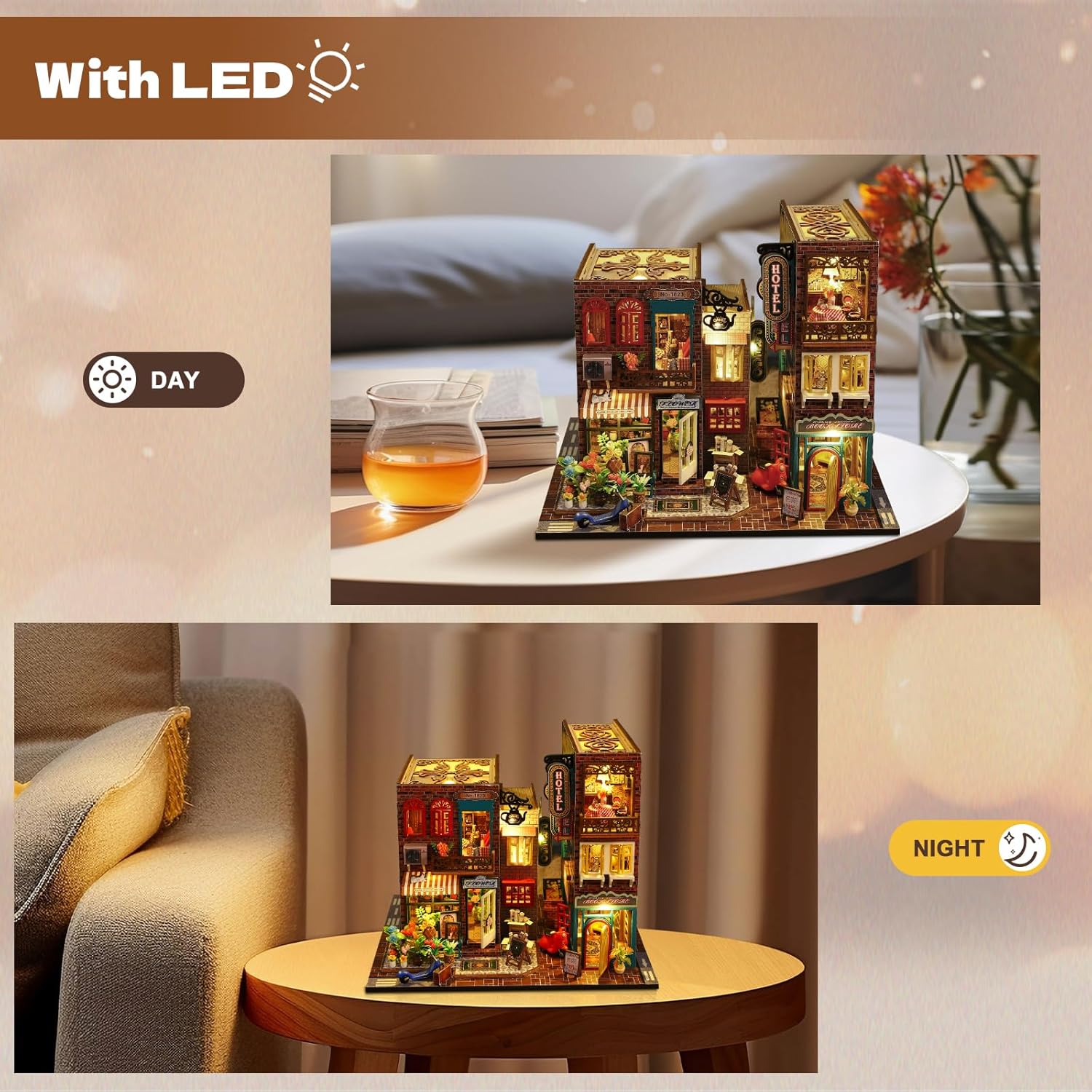 Step into a charming miniature street scene with the Purilite Select DIY Miniature House Kit. This captivating 3D wooden puzzle brings to life the festive spirit of the Scarborough Hotel with intricate detail, glowing LED lights, and a whimsical music box mechanism. Designed for adults and teens who crave creativity and nostalgia.