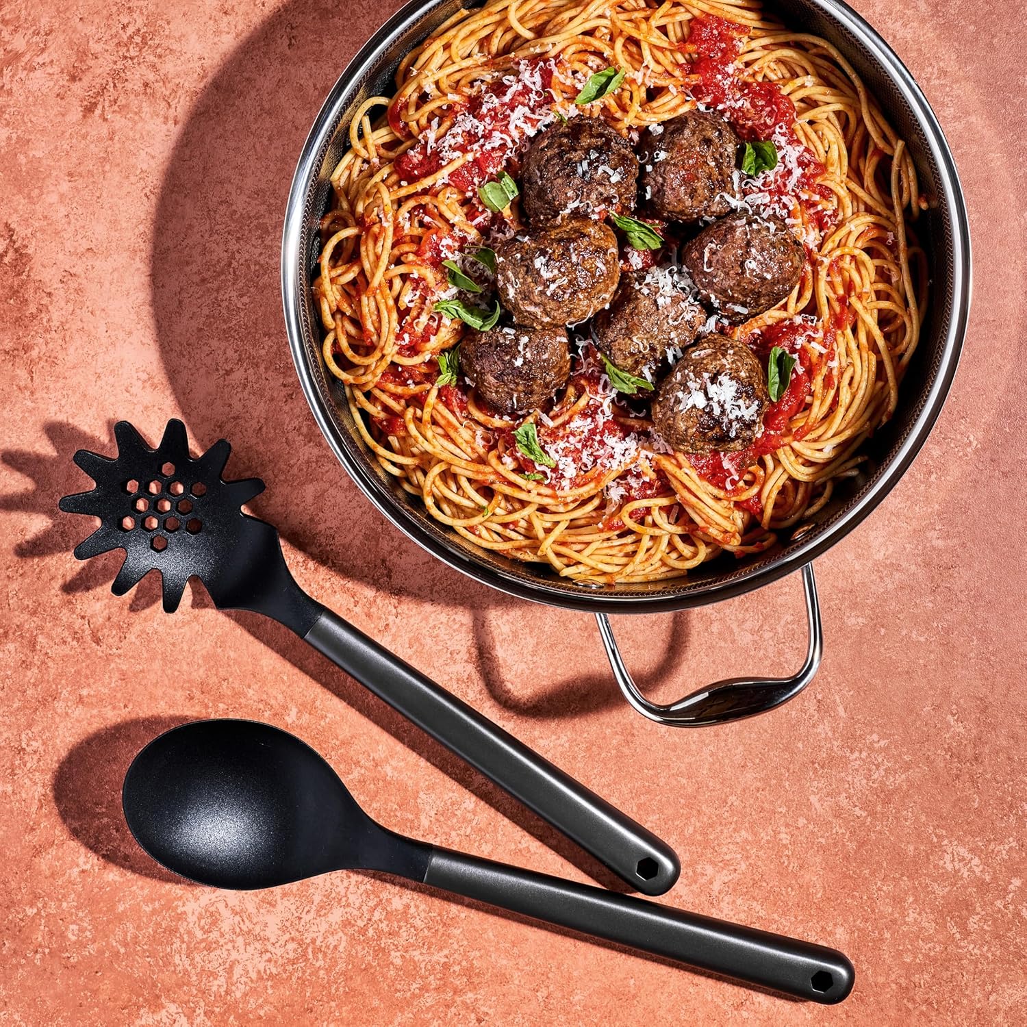 - From delicate folding to robust stirring, each utensil in this set is designed for precision. Flip with the turner, whip with the French-style whisk, scoop with the 6 oz ladle, or serve perfect pasta with the specially designed pasta server. The HexClad 9-Piece Kitchen Utensil Set makes everyday cooking smoother and more efficient.