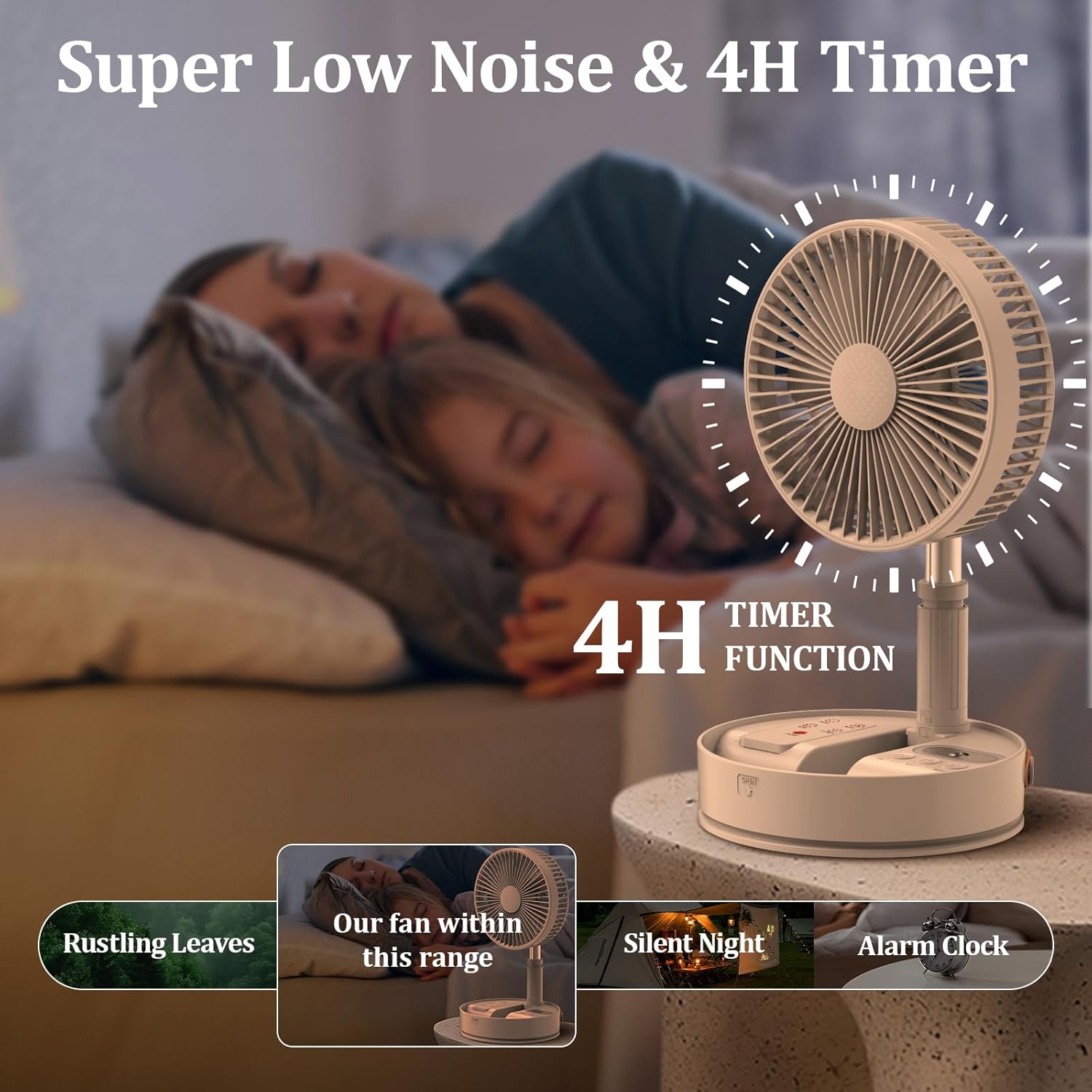 - 【Super Quiet 4-Speed Fan & Timer】This silent fan features 4-speed wind settings, meeting your multiple airflow needs. Thanks for its’ unique silent technology, which makes this quiet fan only have 30-50dB, allows you to enjoy a cool and sound sleep at hot summer night. Besides, our portable fan has 4 timing functions(1 h, 2 h, 3 h, 4 h) you can choose arbitrarily, this can helps you save energy.