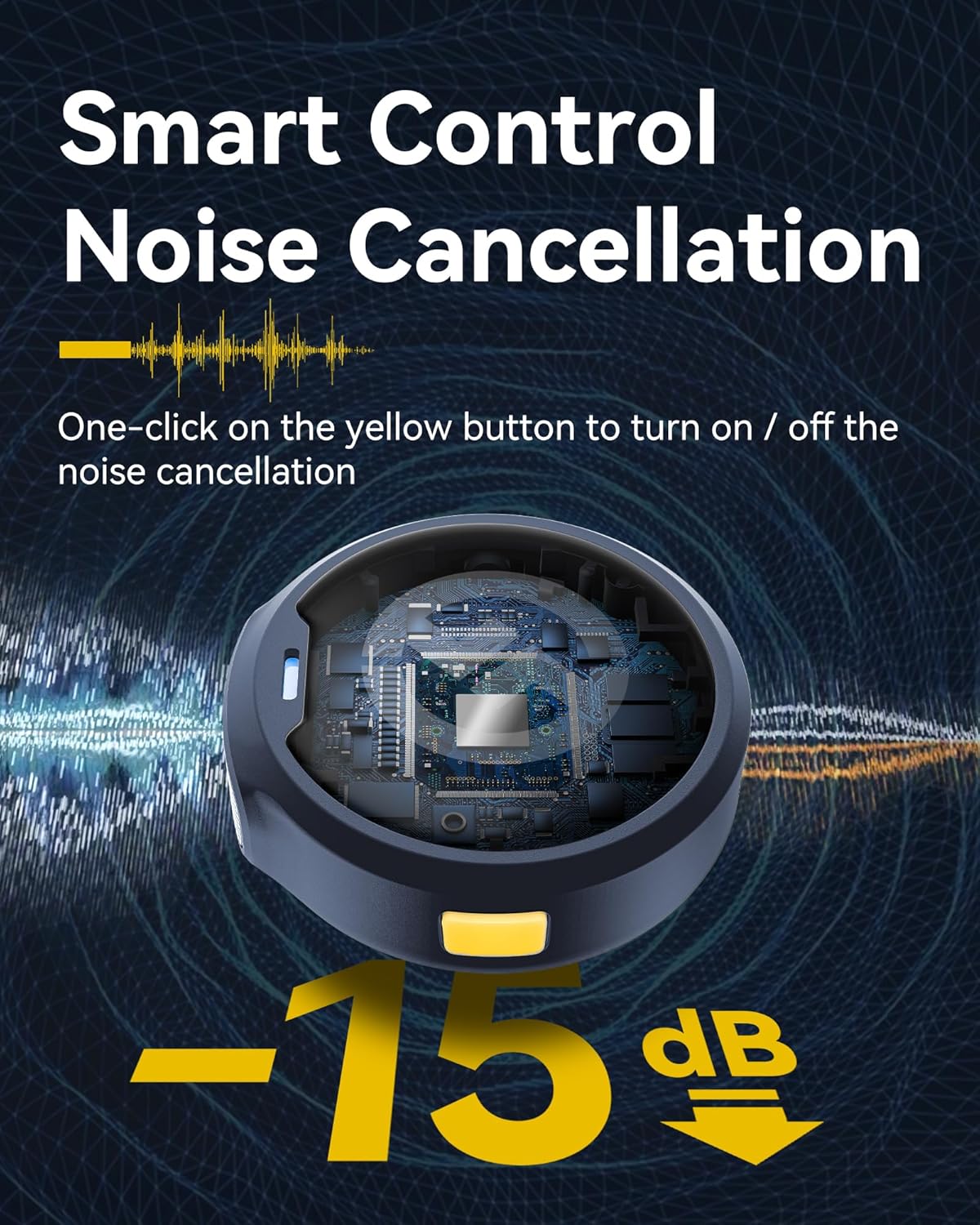 - [Smart Control of Noise Cancellation] LARK M2 supports one-click on the yellow button to turn on/off the noise cancellation on the transmitter. On the receiver of the camera version, the indicator lights at the top of the RX will stay green when noise cancellation is on. Enhanced firmware and audio algorithms ensure crystal-clear, rich, and undistorted human voices, even in noisy environments.