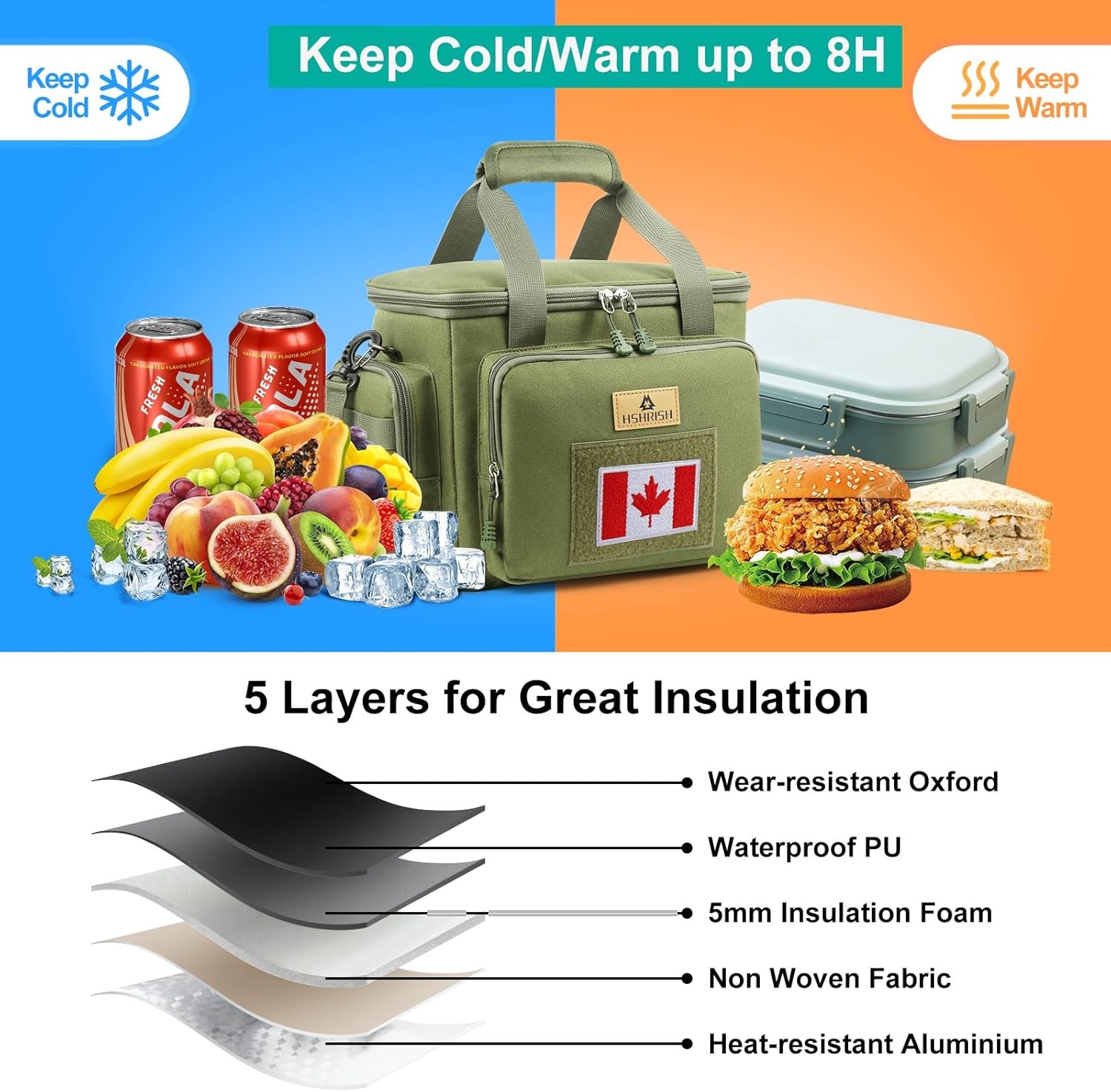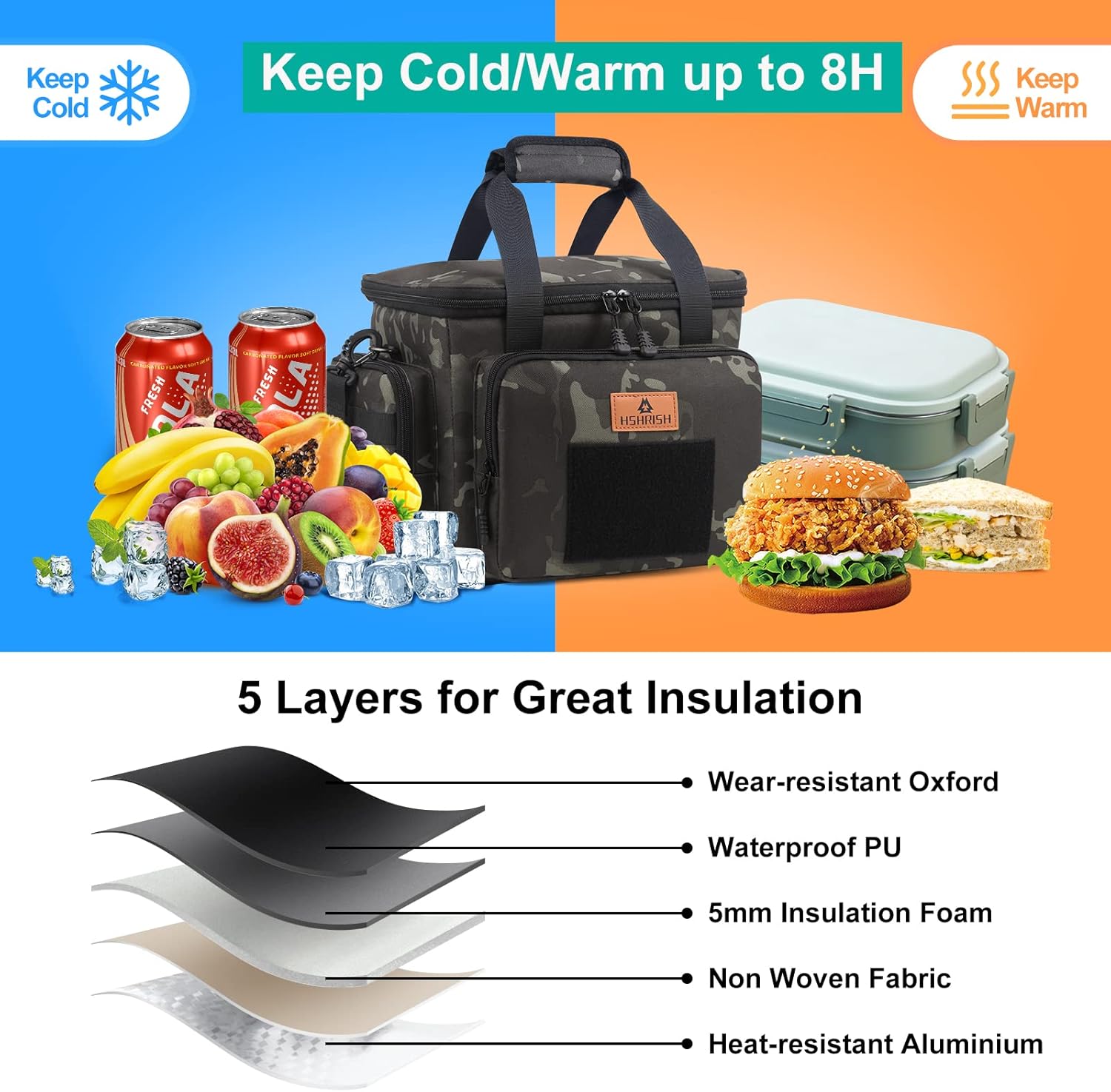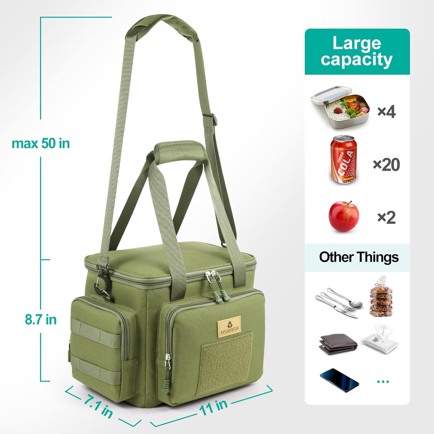 HSHRISH Tactical Large Lunch Bag for Men,Leakproof Insulated Lunch Box, Durable Soft Cooler Bag with Shoulder Strap Lunch Pail for Work Shifts Outdoor