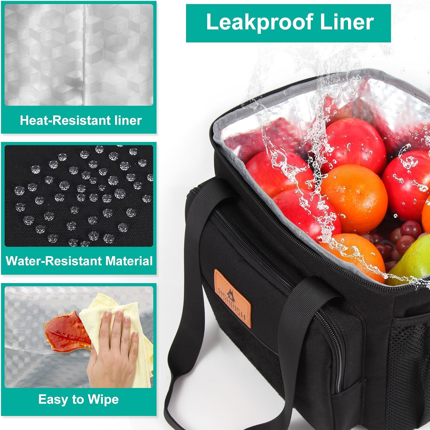 • Excellent Insulation Performance- 6mm thick insulation liner help keep your food cold and hot up to 10 hours.Waterproof and leakproof lining material makes the large lunch bags very easy to clean. If sauce spills inside, just wipe it off with wet cloth or napkins.