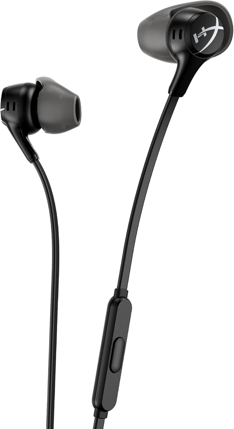 HyperX Cloud Earbuds II – 14mm Drivers, Four Eartips, Hard-Shell Carrying Case, Low-Profile 90° Plug, 3.5mm Plug, Built-in Microphone, Multi-Function Button, PC, Mobile, Nintendo Switch – Black