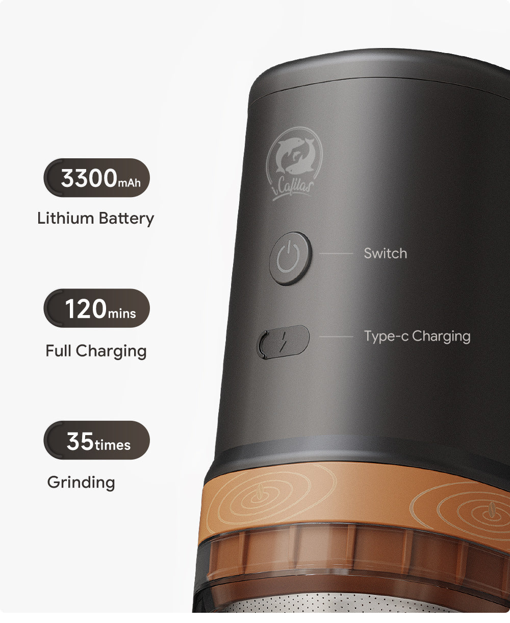 The iCafilas FK13 portable coffee grinder provides consistent grinding performance. Key features include: