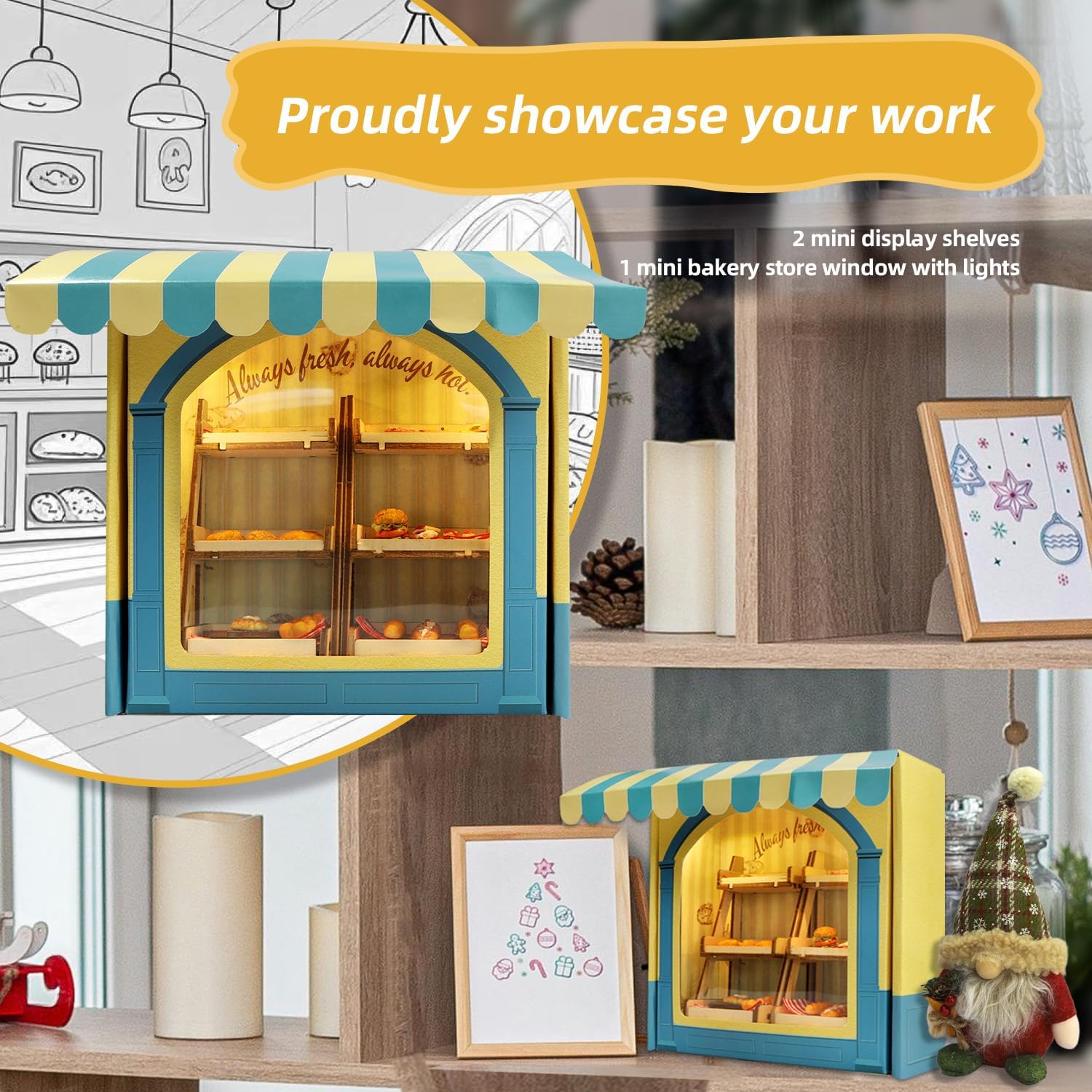 After crafting, bring your mini bakery to life by displaying your pieces on the included wooden trays and shelves. The bakery store window with two soft lights adds a warm, whimsical touch to any room, shelf, or display case.