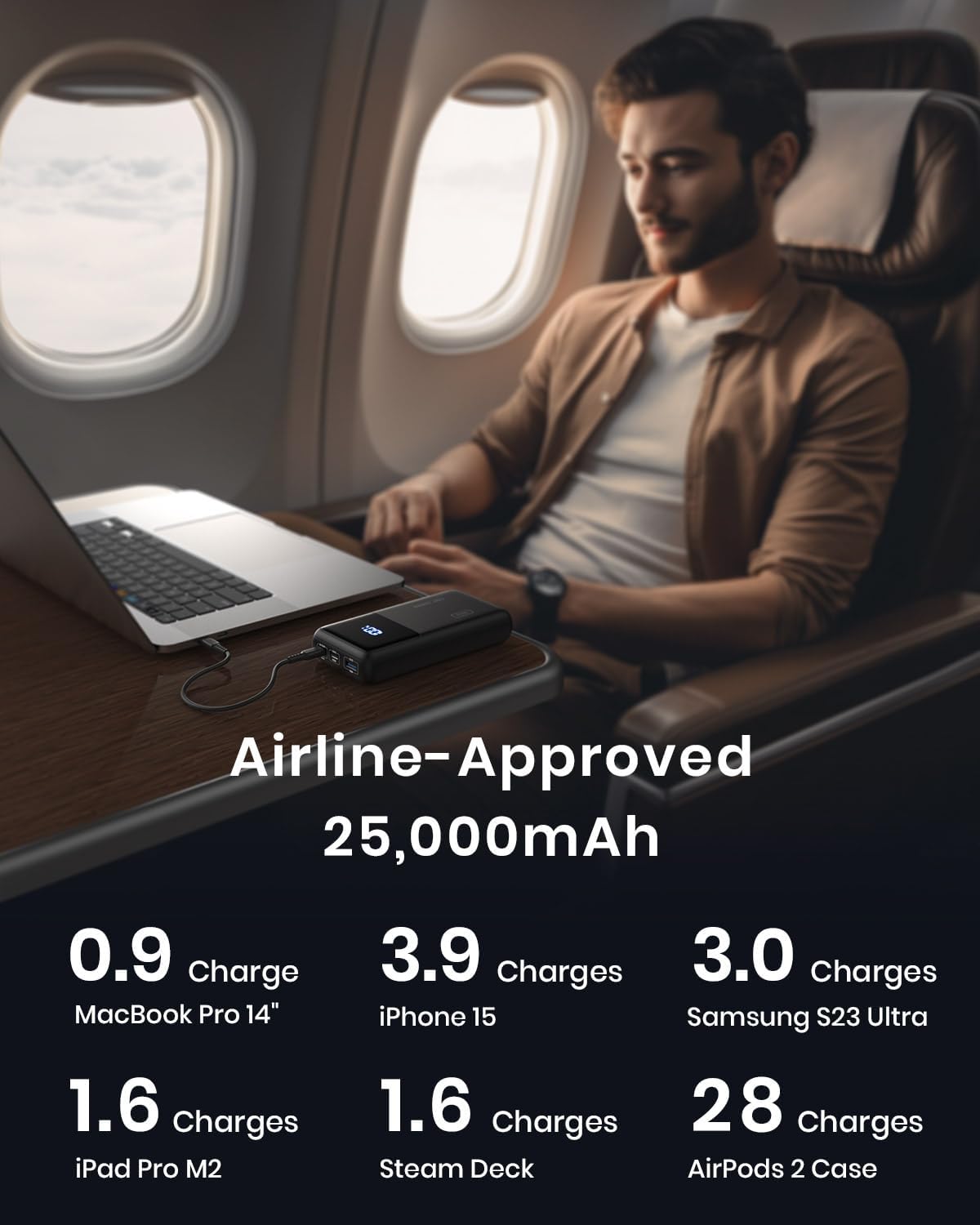 Elevate your charging experience with our cutting-edge power bank. It's optimized to deliver a whopping 100W of power, ensuring lightning-fast charging for flagship laptops, enabling you to stay productive without being tethered to an outlet.