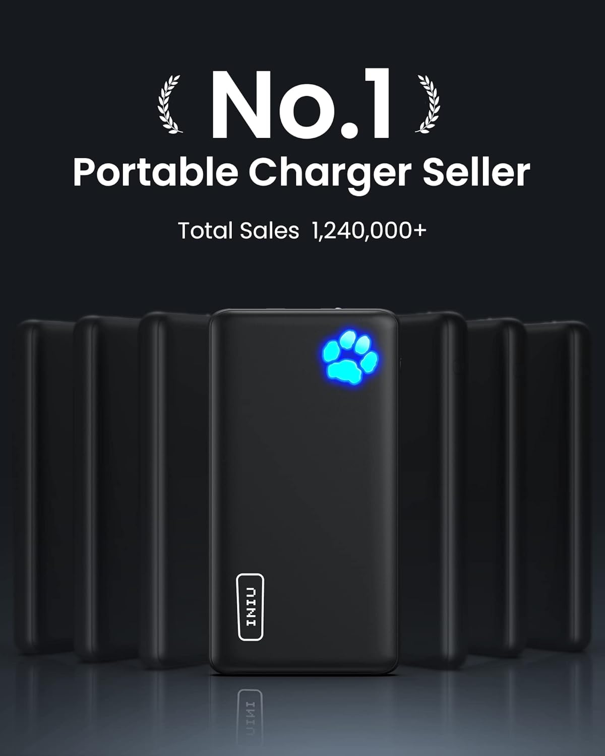 INIU Power Bank, USB C in&Out Slimmest 10000mAh Portable Charger, Triple 3A High-Speed Charge External Battery Pack, Flashlight Phone Charger for iPhone 16 15 14 13 12 Samsung S22 S21 Google LG iPad