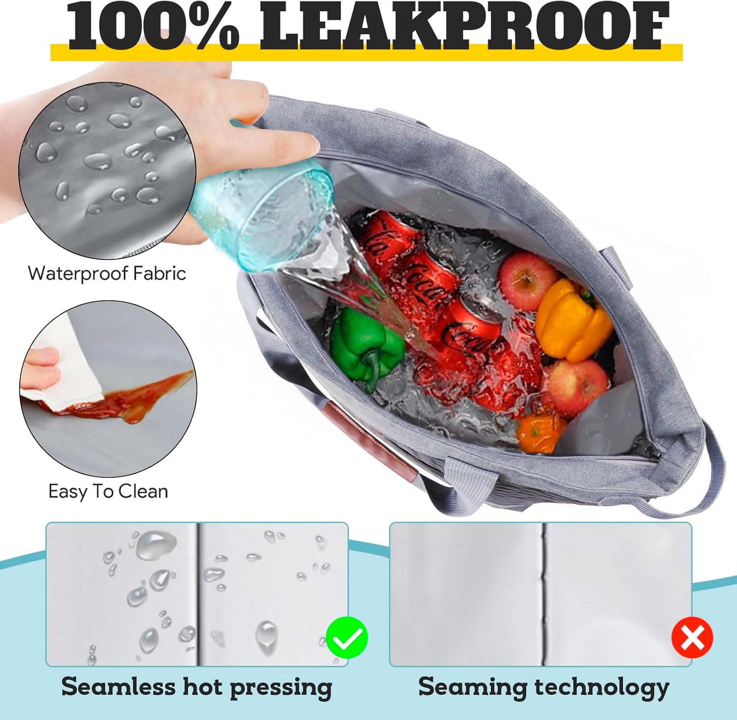 - 【Tight Leakproof, Hassle-Free Cleaning】: The insulated grocery bag is equipped with extra-thick EVA soft lining, made with seamless heat welding technology, ensuring 100% leak-proof. Even if the ice crystals melt into water, there's no need to worry about the water spilling out and staining your clothes or car seats. Secondly, the lining is very easy to clean. If sauce or soup spills, simply wipe it with a paper towel or rag to restore it to its original state.