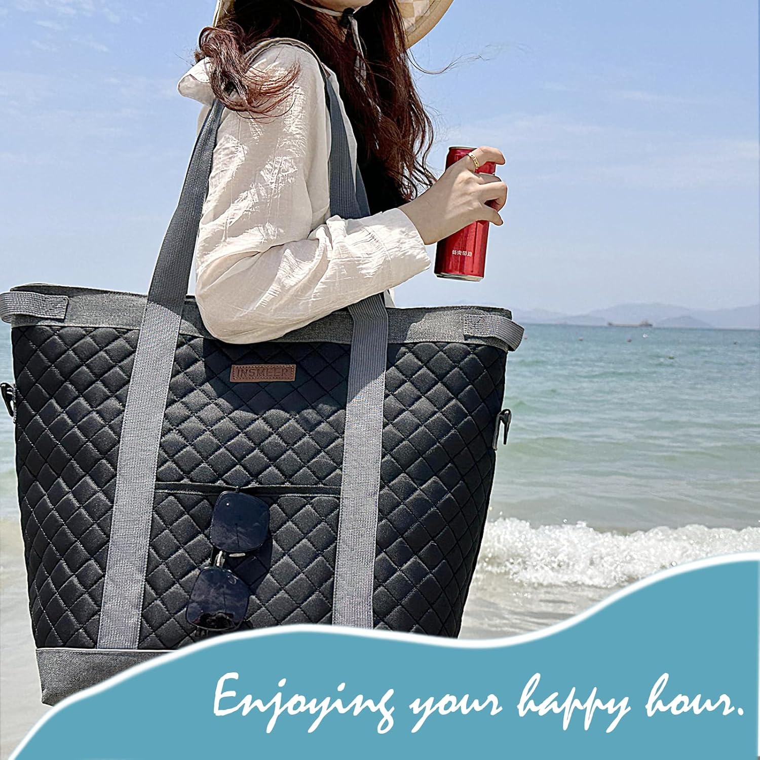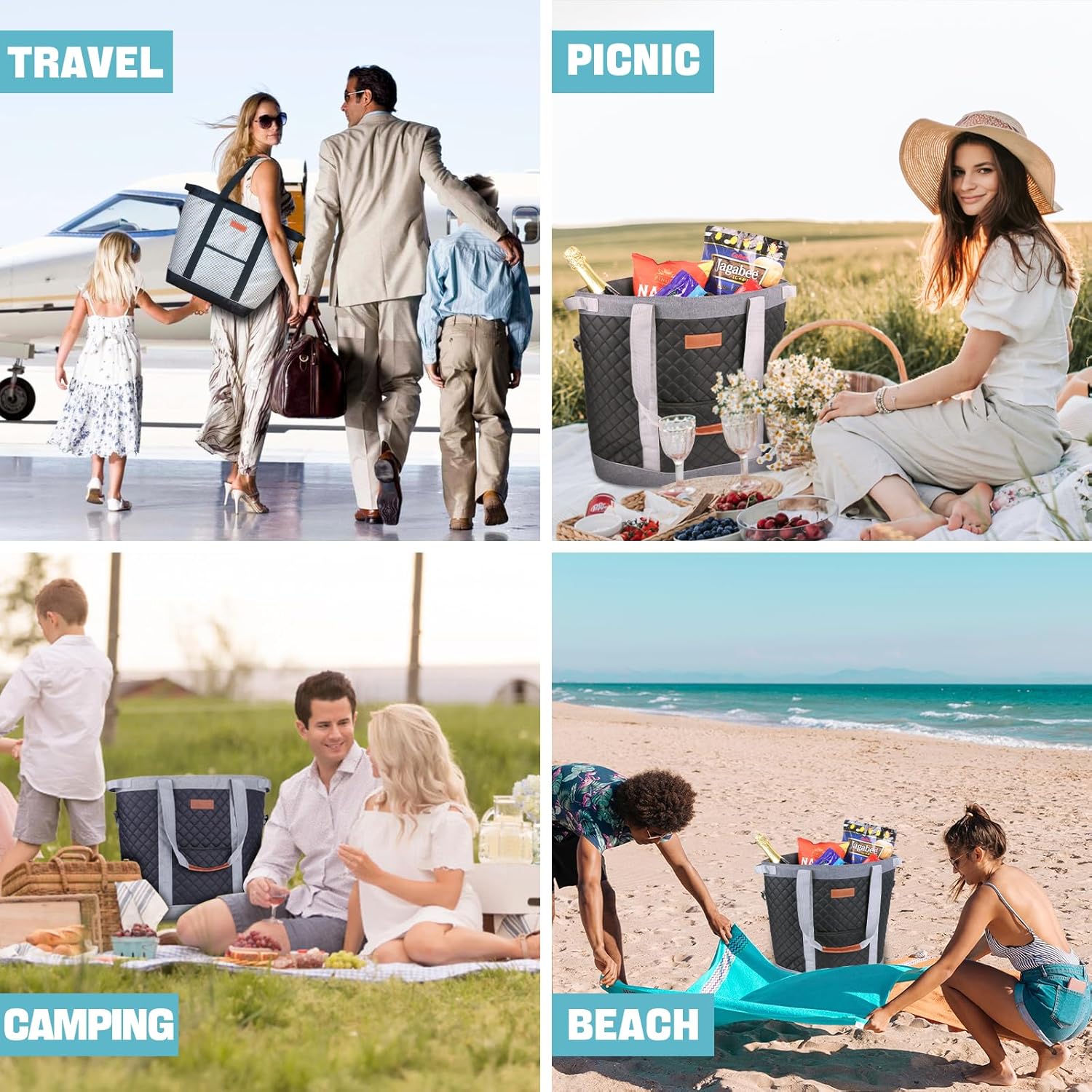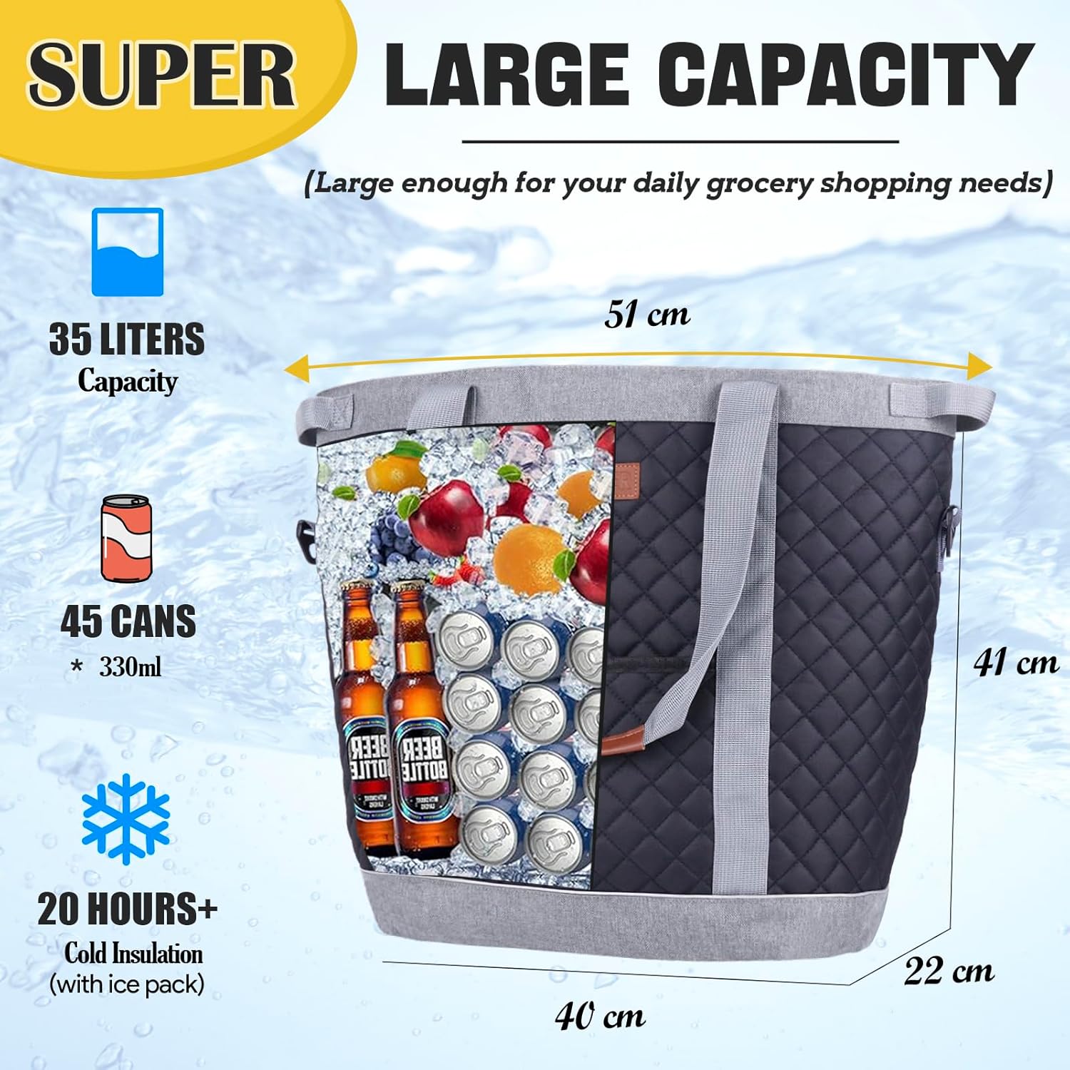 INSMEER Extra Large Tote Cooler Bags - 45 Cans/35L, Collapsible Soft Side Cooler with Shoulder Strap, Leakproof/Waterproof/Insulated/Reusable Grocery Bag for Beach, Camping, Travel, Grocery Shopping