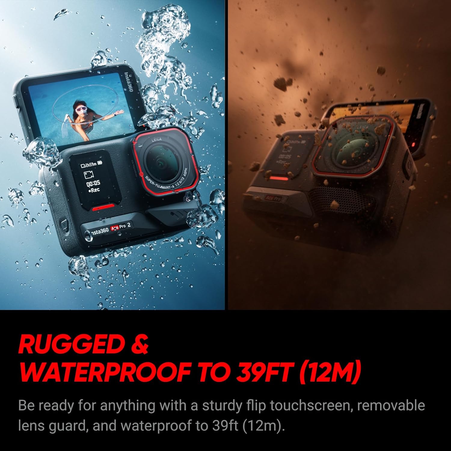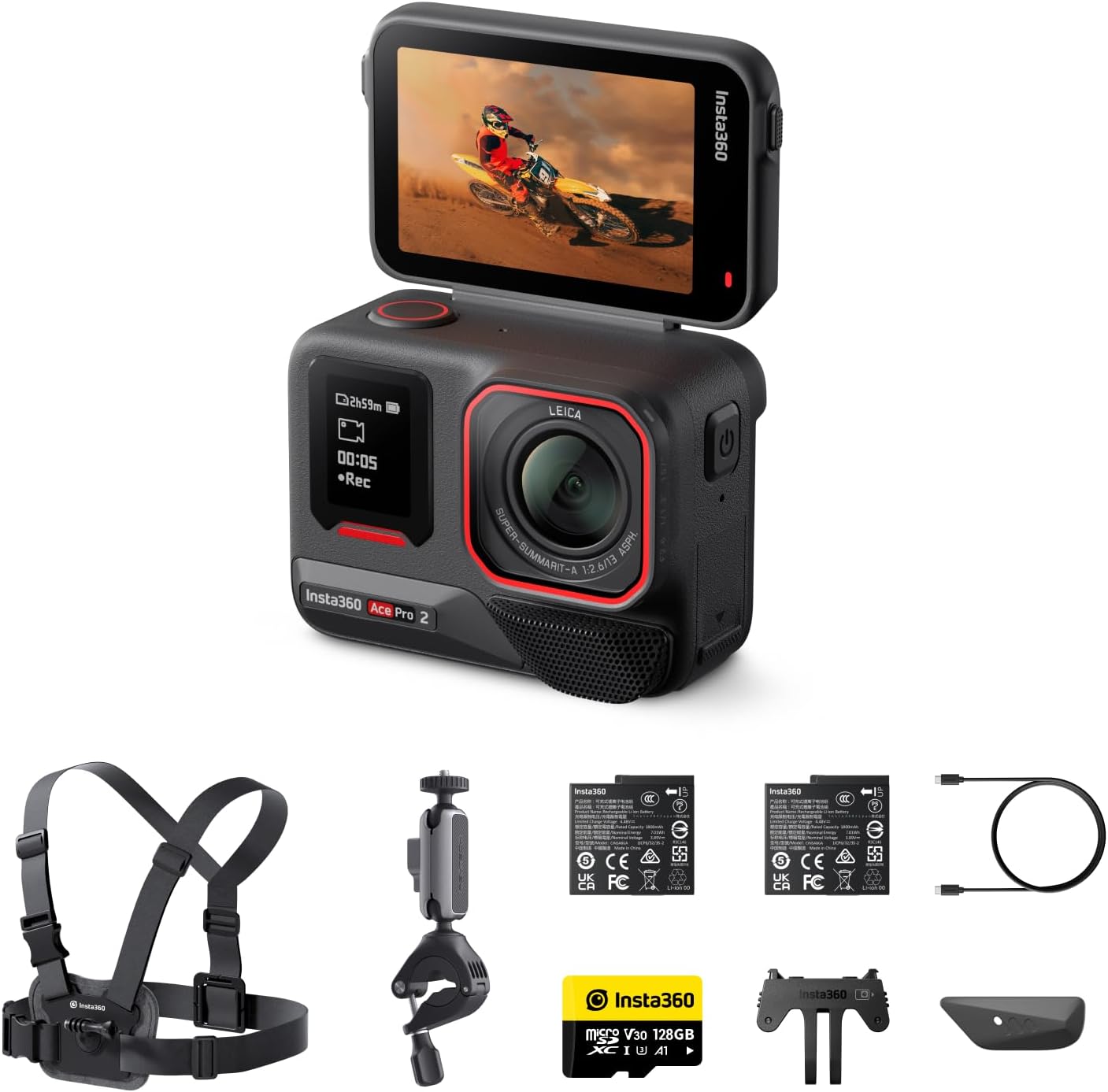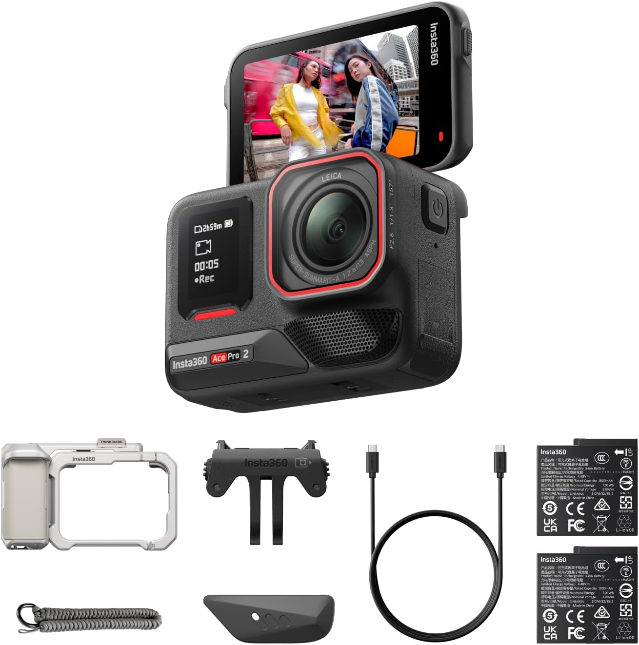 Insta360 Ace Pro 2 Get-Set Bundle- 8K Waterproof Action Camera Co-Engineered with Leica, 1/1.3" Sensor, Dual AI Chip, Leading Low Light, Superior Audio, Flip Screen & AI Editing, Dual Battery