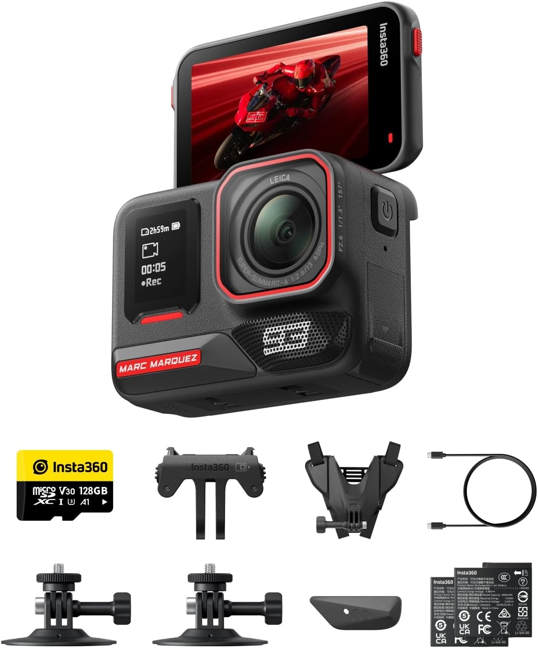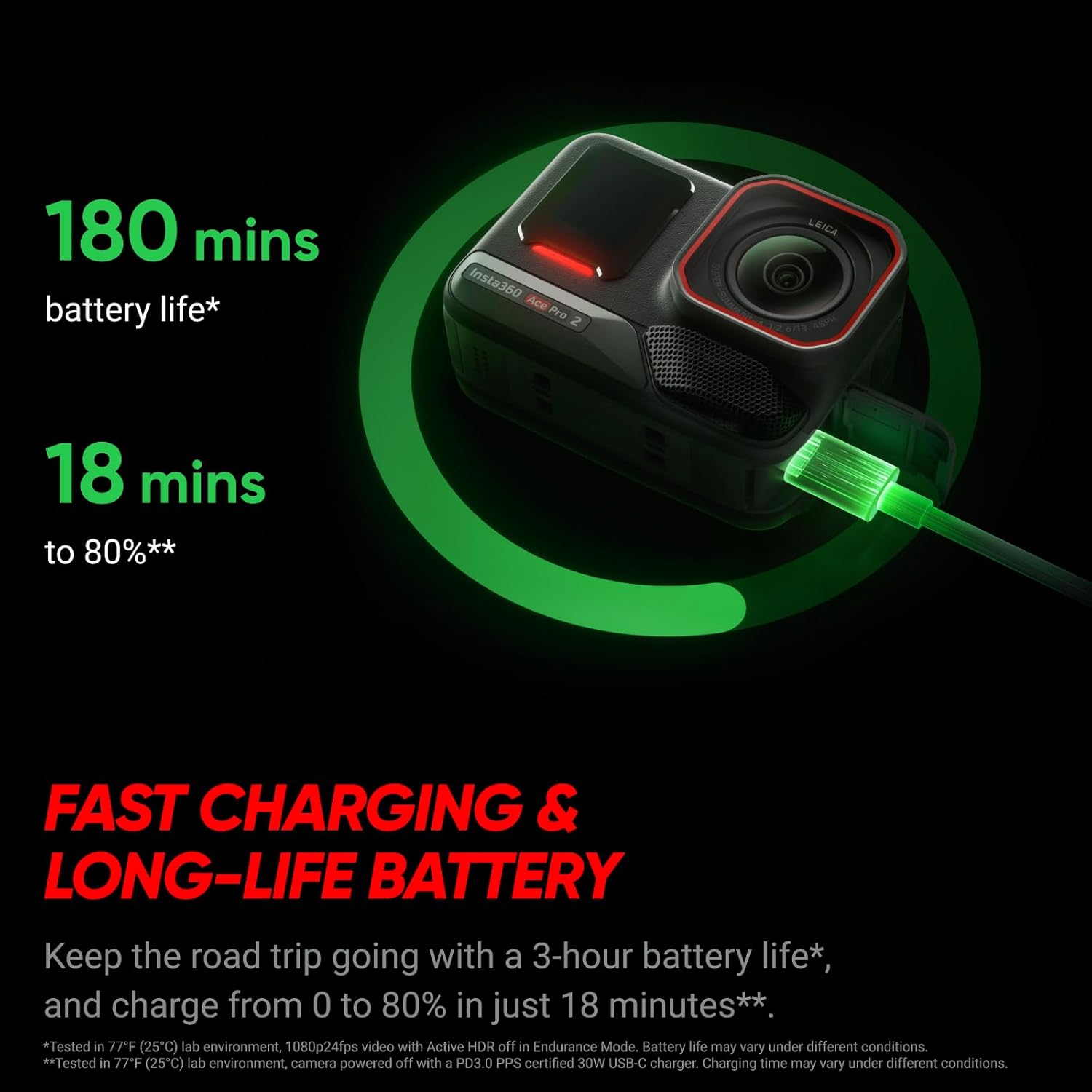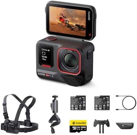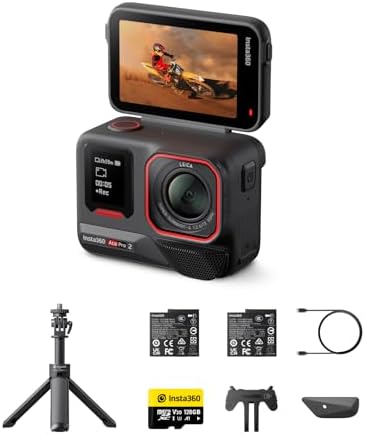 Insta360 Ace Pro 2 Get-Set Bundle- 8K Waterproof Action Camera Co-Engineered with Leica, 1/1.3" Sensor, Dual AI Chip, Leading Low Light, Superior Audio, Flip Screen & AI Editing, Dual Battery