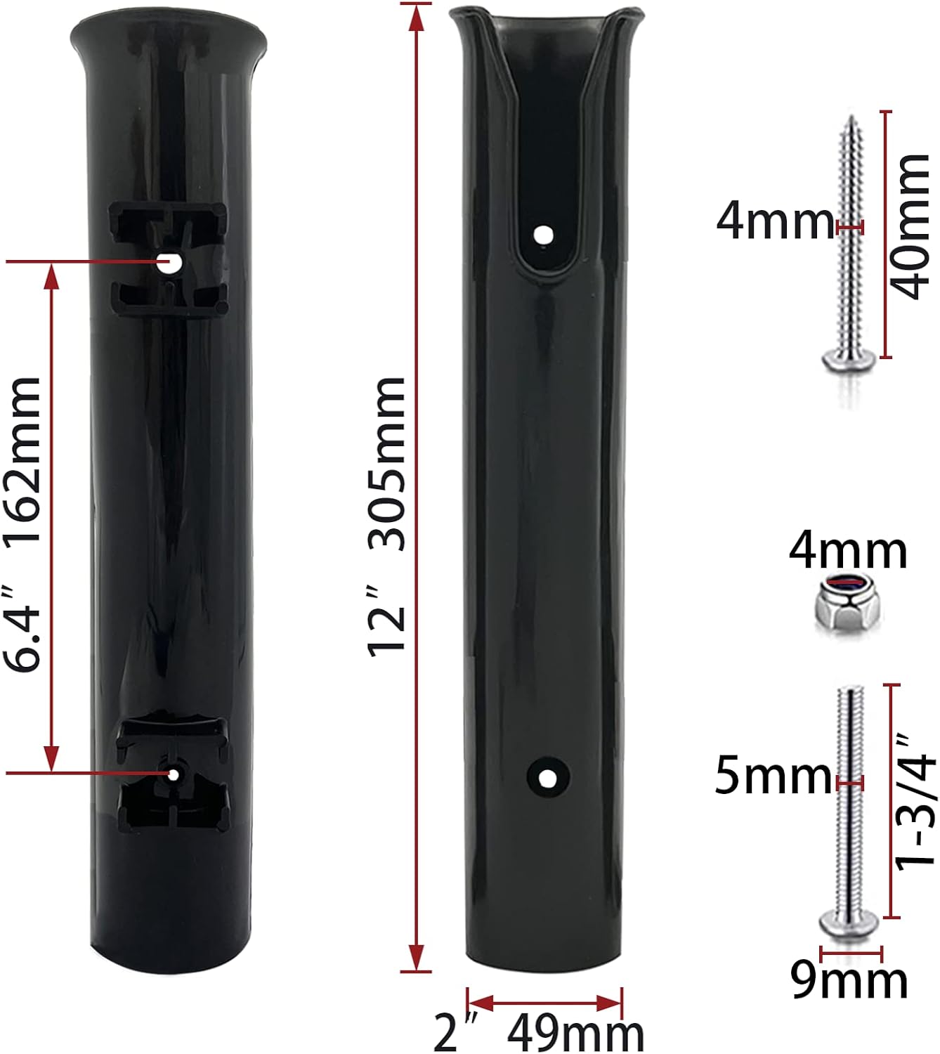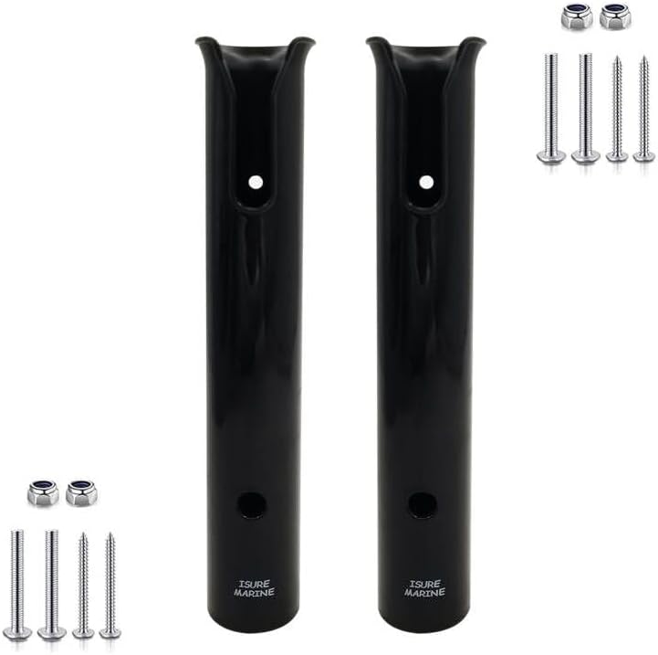 ISURE MARINE 2-Pole Black ABS Plastic Single Tube Multi-Function Fishing Rod Holder, 12" Width, 2" Inlet Diameter
