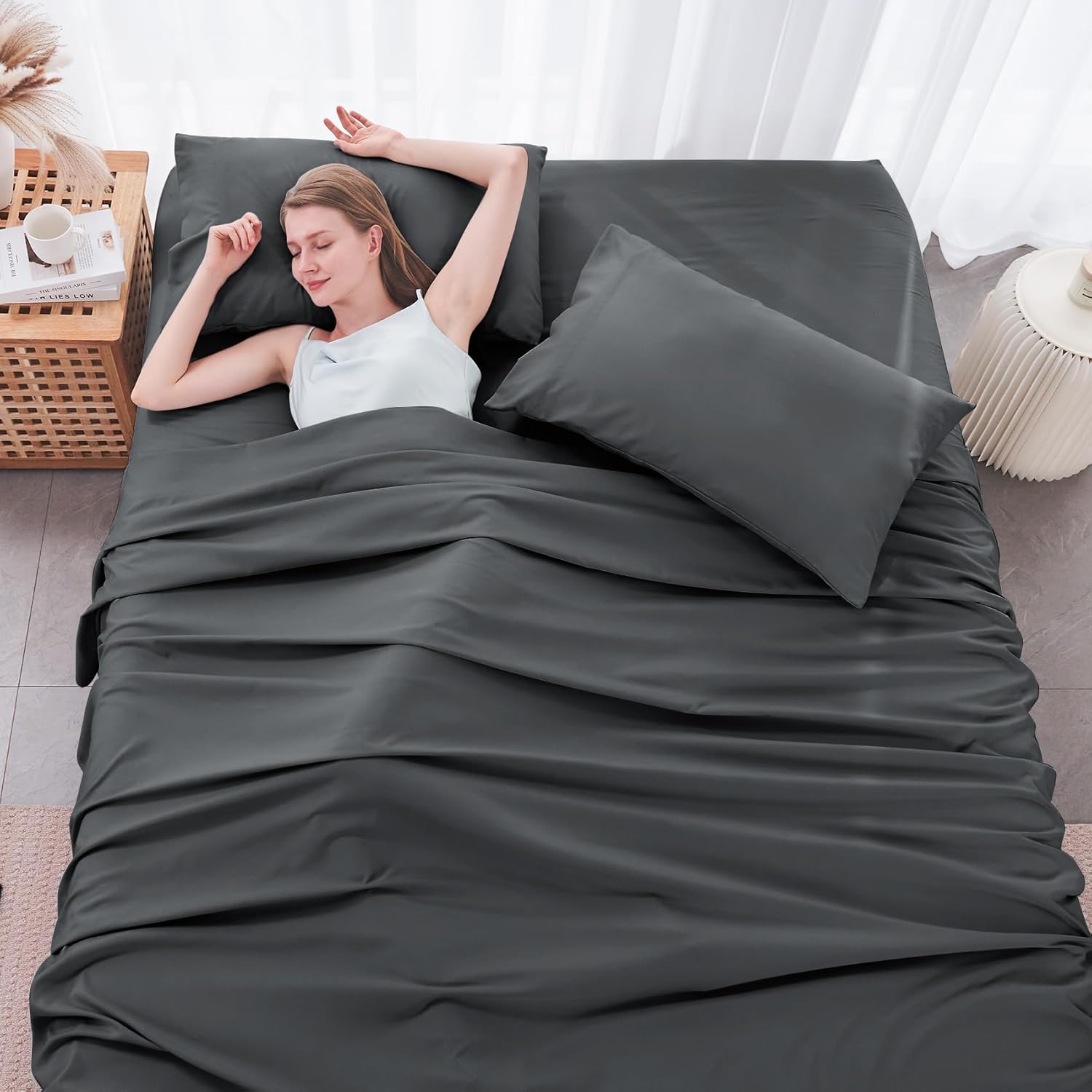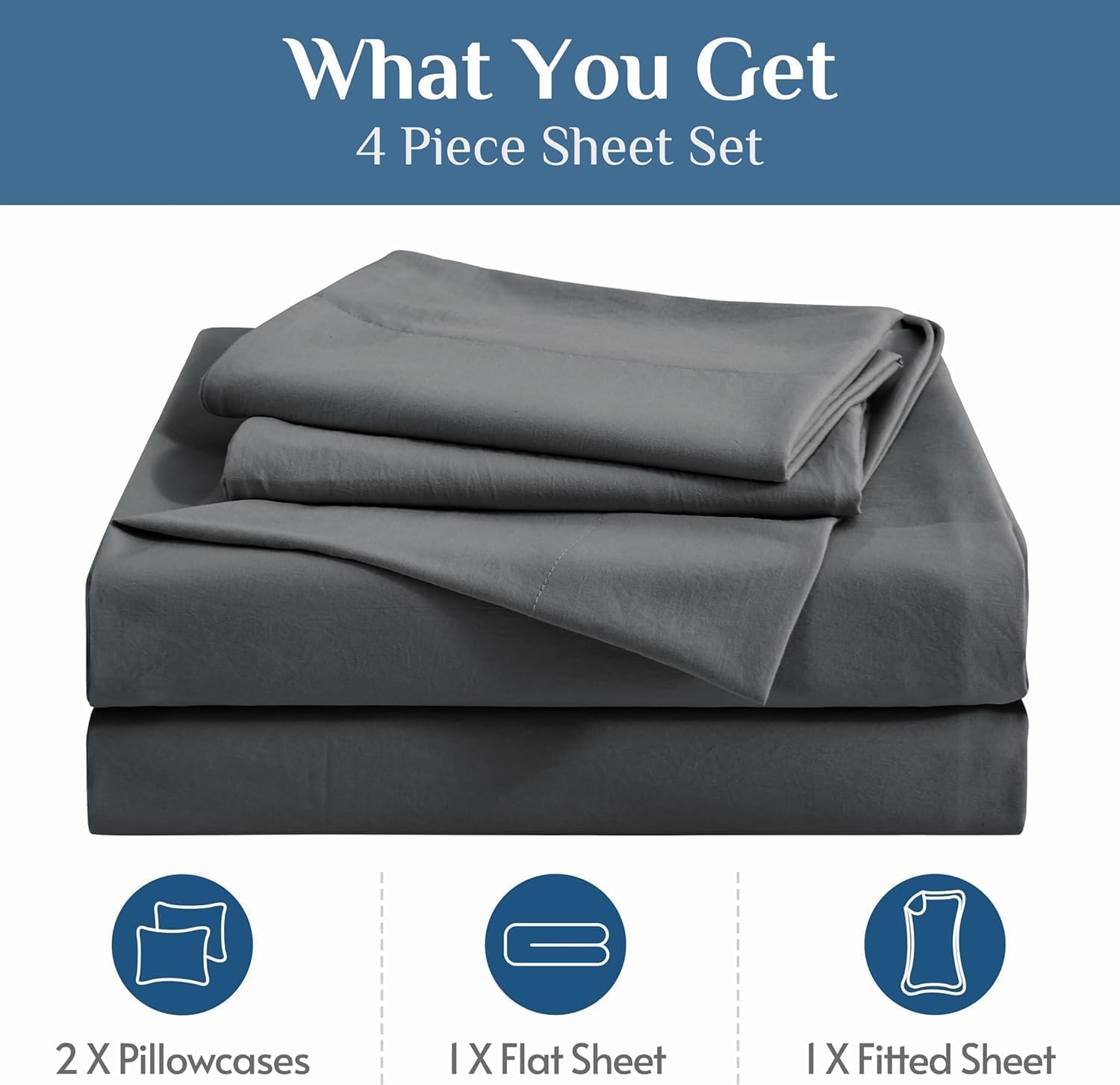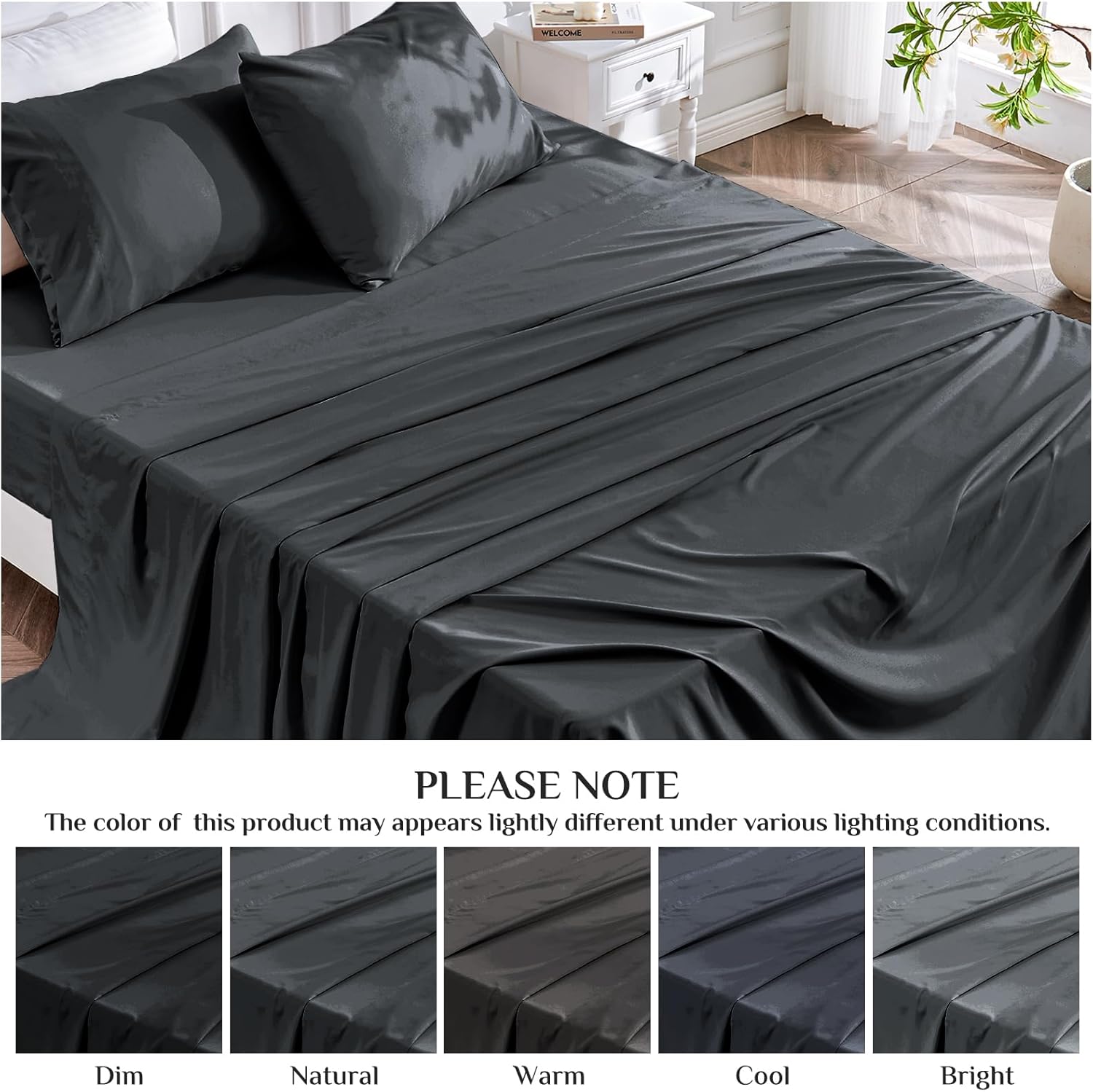 JOLLYVOGUE Queen Size Bed Sheet Set - 4 Piece Bed Sheets Set with Deep Pocket - Soft Breathable & Cooling - Resists Shrinkage & Fading Draps Queen - Easy Care (Dark Grey)